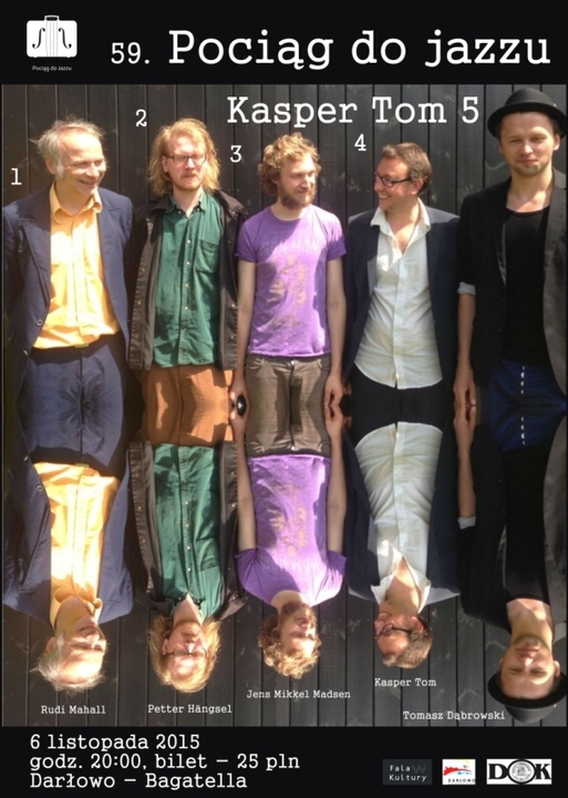 6 listopada (piątek), o godz. 20:00 w Jazz Clubie Bagatella (ul. Powstańców Warszawskich 65) zagra dla nas Kasper Tom 5. W formacji, której liderem jest perkusista i kompozytor Kasper Tom, młodzieńcza werwa i ogromny talent spotykają się z nie mniejszym talentem i wielkim doświadczeniem jednego z najwybitniejszych klarnecistów basowych - Rudiego Mahalla.