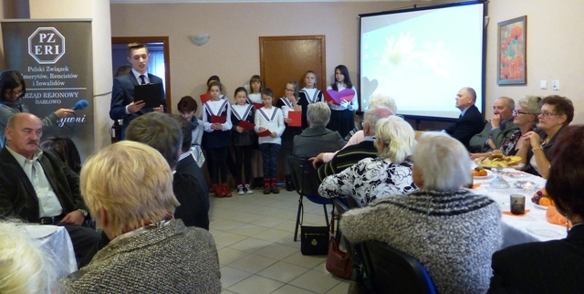 Ponad 50 emerytów i rencistów z Darłowa w swojej świetlicy uczciło Święto Seniora. Na uroczystości obecny był m.in. starosta powiatu sławieńskiego Wojciech Wiśniowski, burmistrz Darłowa – Arkadiusz Klimowicz, radny powiatu sławieńskiego i jednocześnie dyrektor SP nr 3 w Darłowie Andrzej Protasewicz, przewodniczący darłowskiej Rady Seniorów Jerzy Surowiec, który oprócz złożenia życzeń podkreślił, że czuje się związany emocjonalnie ze świętującymi osobami, ponieważ sam jest w wieku senioralnym. Burmistrz Darłowa złożył seniorom życzenia oraz wręczył list gratulacyjny. Gospodarz miasta wspólnie ze starostą ufundowali i przekazali emerytom i rencistom wieżę muzyczną. Europejski Dzień Seniora stanowił doskonałą okazję do spotkania i świetnej zabawy. Seniorzy i zaproszeni goście, bawili się doskonale. W doskonały nastrój wprawiły wszystkich przybyłych występy uczniów Szkoły Podstawowej nr 3 im. Żołnierzy WOP oraz multimedialna prezentacja obrazująca współpracę seniorów z uczniami. Duet Elżbiety Gagjew i Genowefy Kingiert satyrycznym podejściem do życia rozbawił wszystkich niemal do łez. W uroczystą atmosferą świetnie wpisały się okolicznościowe wiersze Piotra Chabiery. Kawa, herbata, pyszne ciasta, słodycze i owoce uprzyjemniły uroczyste spotkanie okolicznosciowe.