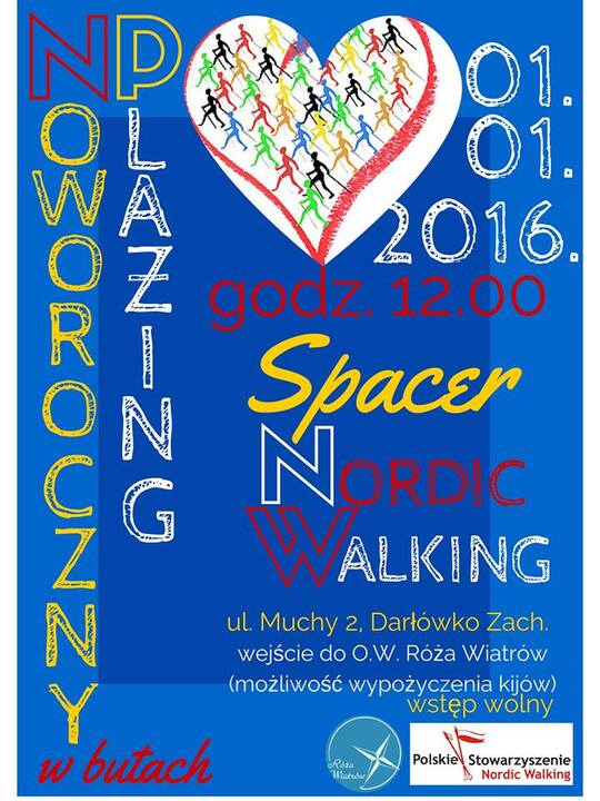 Ośrodek Wczasowy „Róża Wiatrów" w Nowy Rok - tj. 1 stycznia 2016 roku zaprasza do udziału w spacerze Nordic Walking brzegiem naszych plaż. Zbiórka uczestników przy ul. J. Muchy 2 w Darłówku Zachodnim - siedziba Ośrodka. Start punktualnie w samo południe - godz. 12:00.