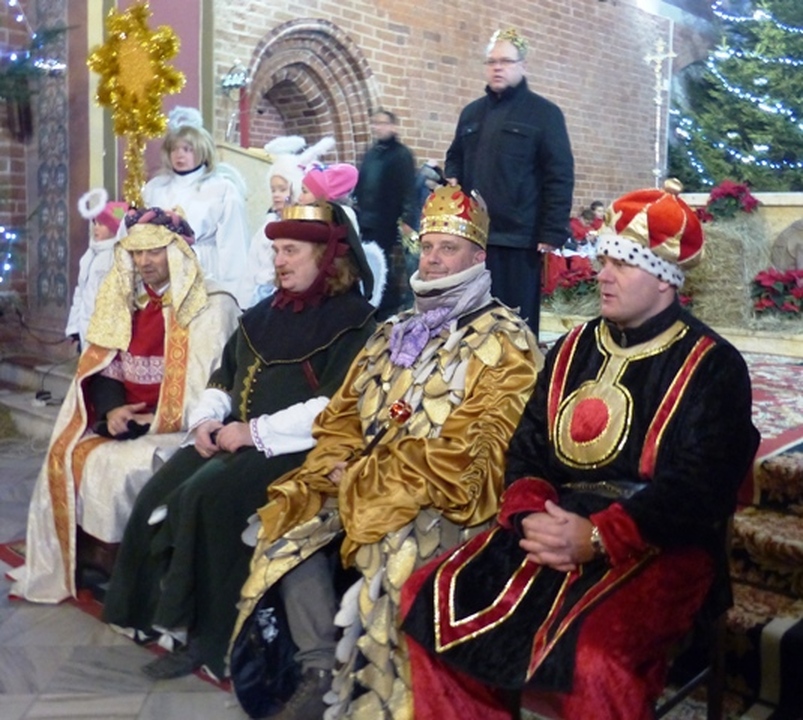Na dziedziniec zamku króla Eryka z trzech stron świata dotarli Trzej Królowie: Kacper, Melchior i Baltazar z orszakami. W murach zamku powitał ich Eryk Pomorski czwarty król i burmistrz Darłowa - Arkadiusz Klimowicz. Na dziedzińcu zamkowym lśniło od koron, bereł, gwiazd i chorągwi. Czterej królowie na koniach wraz z orszakiem przedefilowali przez miasto z rezydencji królewskiej Eryka ulicami: Zamkowa - Podzamcze - Powstańców Warszawskich - Rynek, Plac T. Kościuszki– Kościelna –Wenedów - Kościół Mariacki. Warto wiedzieć, że w roku 2016 mija 620 lat jak Eryk Pomorski z urodzenia darłowiak został władcą Skandynawii. Królewskiemu orszakowi towarzyszyły tłumy mieszkańców. Królowie pokłonili się przed żłóbkiem i złożyli nowonarodzonemu Jezusowi Chrystusowi dary: złoto, kadzidło i mirrę. Dalej śpiewano kolędy i pastorałki przed kościelnym ołtarzem. W Czterech Króli wcielili się: o. Piotr, Arkadiusz Sip, Wojciech Polakowski i Bronisław Nowak, któremu towarzyszyło zaprzyjaźnione Bractwo Rycerskie ziemi słupskiej. Przybyłych Magów serdecznie powitał proboszcz parafii MB Częstochowskiej o. Stanisław Piankowski. W imieniu górali okolicznościową śpiewką witał władców O. Sebastian. Kolędy po białorusku śpiewał O. Paweł z Grodna, a w jednej wtórował mu O. Damian. Chór kościelny wspólnie z licznie przybyłymi mieszkańcami śpiewali kolędy i weselili się z tego niecodziennego święta. Organizatorami uroczystości byli: Miasto Darłowo, Zamek Książąt Pomorskich - Muzeum w Darłowie i parafia MB Częstochowskiej.