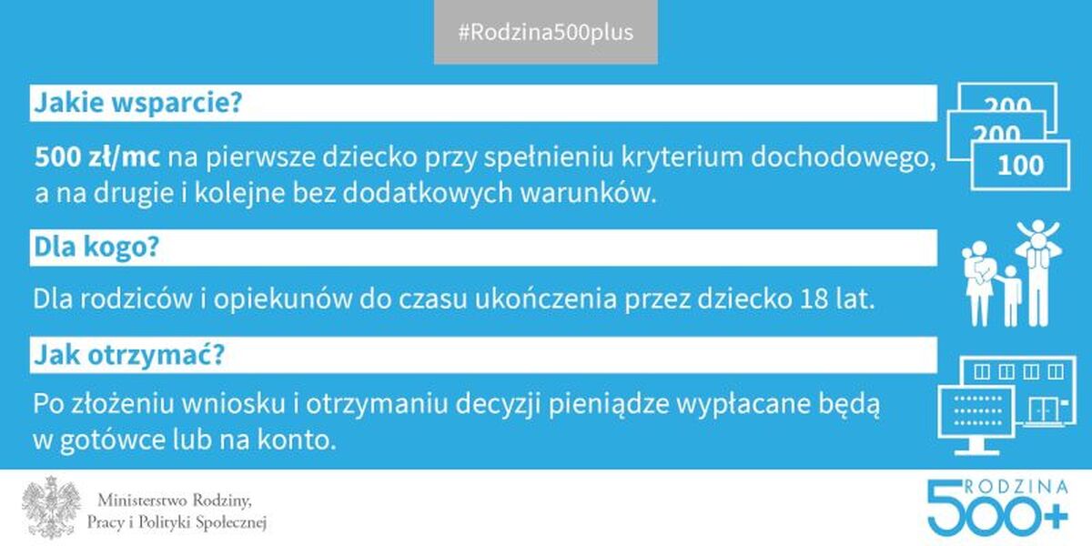 Więcej informacji na temat „500+” na stronie Ministerstwa Rodziny, Pracy i Polityki Społecznej