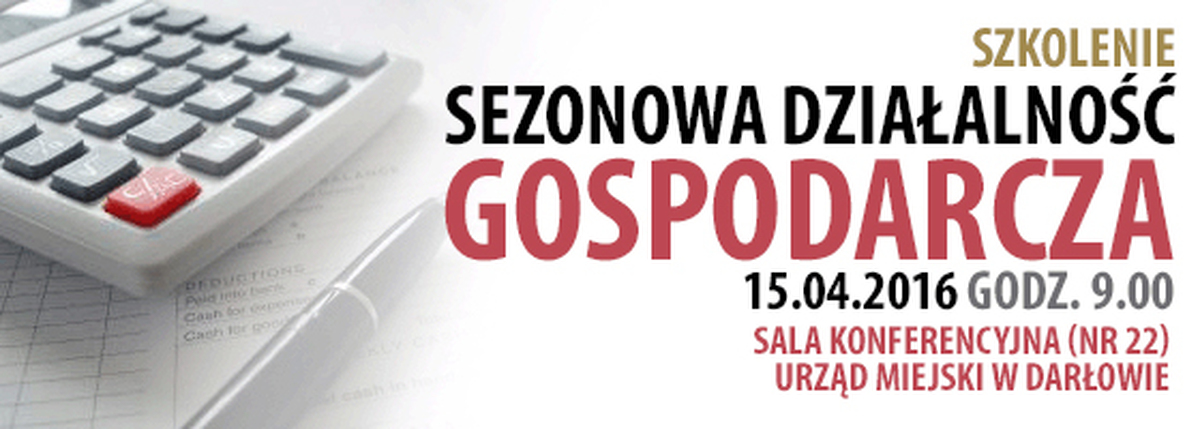Przypominamy, że już jutro tj. 15 kwietnia 2016 roku, o godzinie 9:00 w sali konferencyjnej darłowskiego Ratusza odbędzie się szkolenie dotyczące sezonowej działalności gospodarczej. Szkolenie przeprowadzą pracownicy Drugiego Urzędu Skarbowego w Koszalinie. Zakres szkolenia i szczegółowe informacje na ten temat znajdziecie Państwo pod adresem: https://darlowo.pl/pl/?page=wiadomosci&wiadomosc=5856