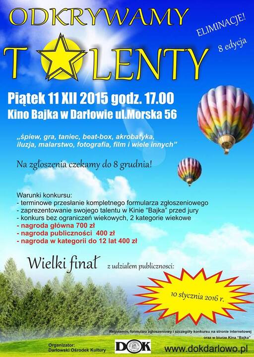 Dla przypomnienia przytaczam zestawienie ważniejszych ubiegłorocznych imprez zorganizowanych i współorganizowanych przez DOK: XVII Darłowskie Gody, Finał Odkrywamy talenty i Finał WOŚP, Koncert Grażyny. Łobaszewskiej, Kulturalne ferie, „Piwnica pod Baranami” , Koncert HIP HOP, Mistrzostwa Pomorza w BREAK DANCE, Kulturalny Dzień Kobiet, Koncert CREE, Gala wolontariatu, Food Festiwal, Koncert DIKANDA, Światowy Dzień Inwalidy, Uroczystości majowe, Bieg Flagi, Ogólnopolski Konkurs Poetycki, Dni Darłowa, Festyn – Dzień Dziecka, Spotkania z fotografią- plener, Noc Świętojańska, Festyn rodzinny, Festiwal Media i Sztuka, Koncert – Ork. Soch., zespół ARCI, Festiwal taneczny PATMAN CREW, Święto ulicy Władysława IV, Festiwal Filmów Skandynawskich, Koncerty muzyki organowej, IV Darłowskie lato z poezją, Festyn „Morze miłości”, Koncert Czesław Śpiewa, Spektakle teatralne, Przeglądy, warsztaty, konkursy, prelekcje, Koncerty Pociąg do Jazzu, Koncert Grażyny Barszczewskiej,