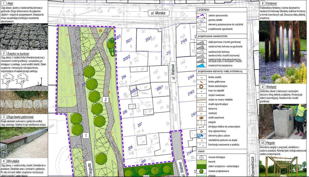 - Zakłada się zachowanie istniejącego układu komunikacyjnego, z dojazdem ulicą Traugutta od ulicy Morskiej. Obecny ciąg komunikacyjny ma zostać poszerzony do szerokości 4,5 m.