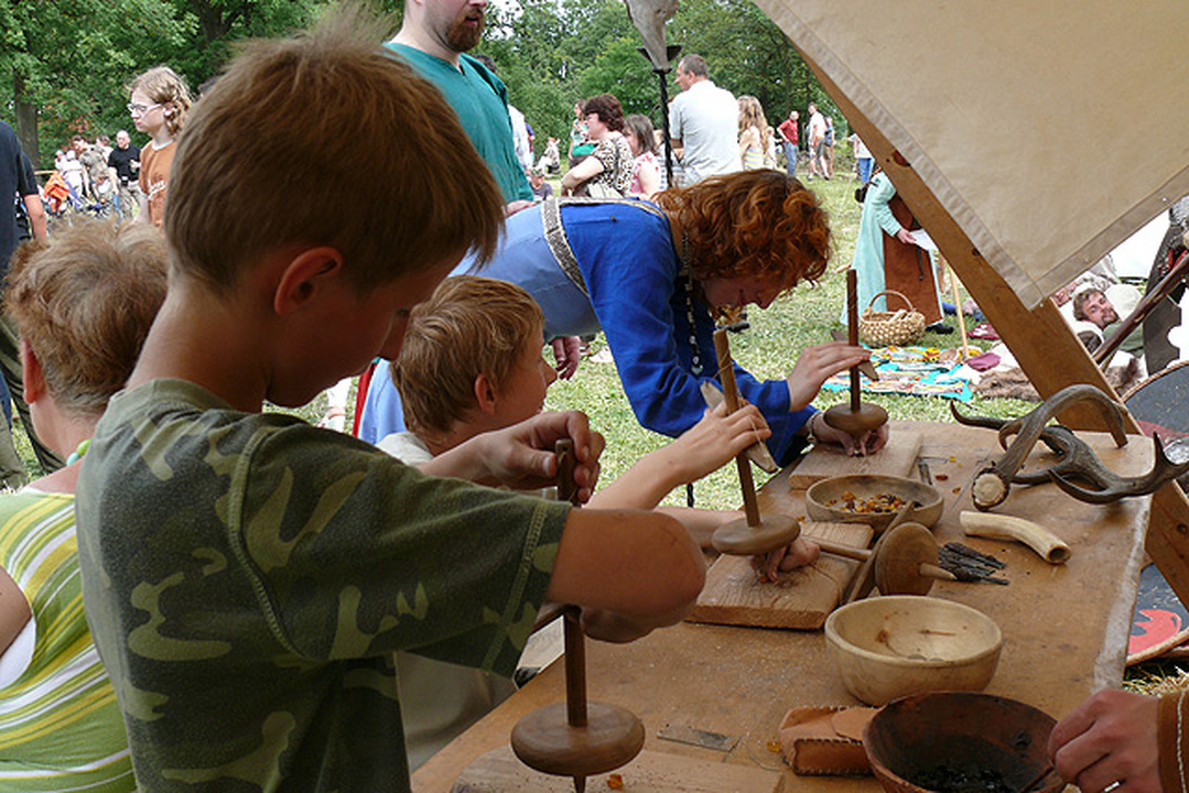 Nazajutrz na Wyspie Łososiowej rozbito namioty i prezentowano dawne rzemiosła i techniki. W centrum wyspy stała figura Światowida patrząca na cztery strony świata, a pod nią dary z chleba. Nad Wieprzą koncertował zespół folkowy „Nietonie” z Wrocławia. Na miejscu można było spróbować podpłomyków z miodem pieczonych na ogniu. W centrum wyspy Zespół Tańca Dawnego Gdańskiej Szkoły Fechtunku u Bractwa Św. Jerzego i drużyna Wojów Skansenu Archeologicznego „Grodzisko” w Sopocie dawały pokazy walk wojów słowiańskich i prezentowały budowę ówczesnych zbroi i uzbrojenia. Osobne stoisko mieli łucznicy, którzy szkolili darłowskie dzieci jak celnie trafić w dziesiątkę. Szeroko prezentowano dawne rzemiosła. Można było nauczyć się wiercenia otworów w bursztynie, lepienia i wypalania naczyń, tkactwa, lutnictwa, wyrobu amuletów i talizmanów, krzesania ognia bez użycia zapałek czy leczenia magicznymi ziołami. Dzieci i młodzież chętnie brały udział w średniowiecznych konkursach zręcznościowych oraz dawnych obrzędach. Było to już IV Darłowskie Spotkania z Historią i Tradycją.