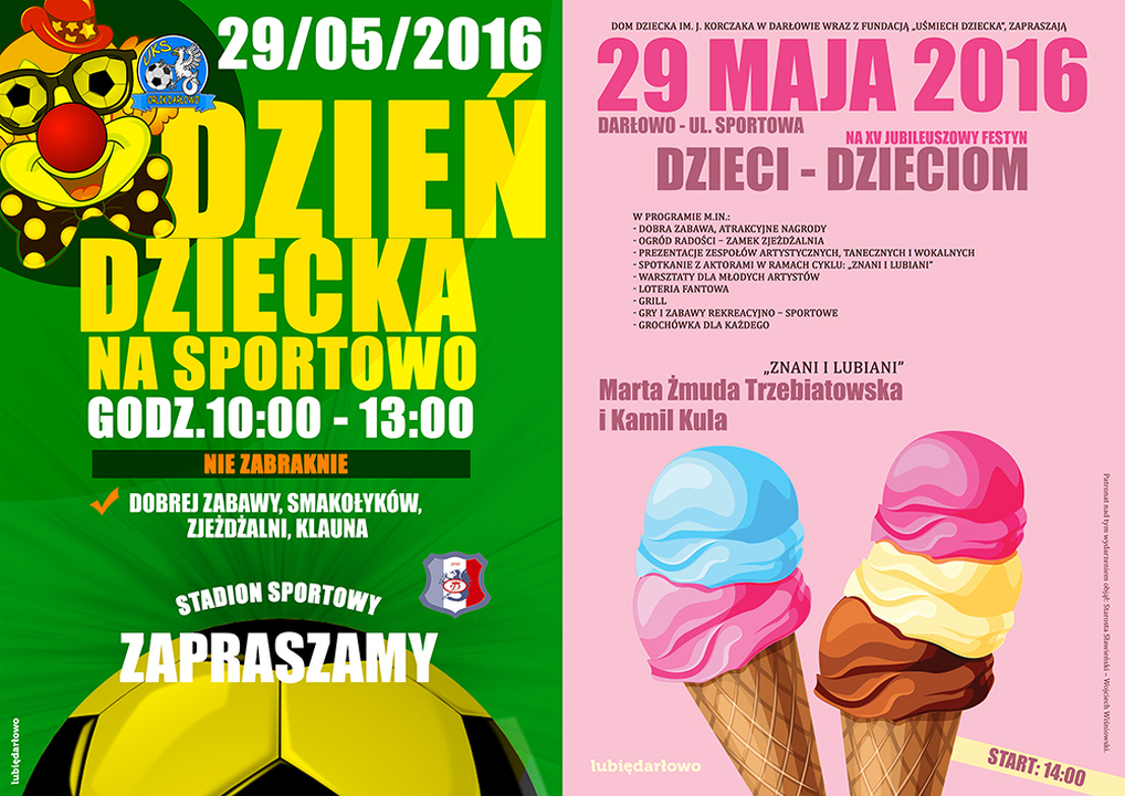 Dla dzieci i ich rodziców mamy dobrą informację. Dwa niedzielne festyny obok siebie, niemal jeden po drugim. Pierwszy rozpocznie się już od godz. 10:00 na miejskim stadionie, drugi popołudniowy na terenie rekreacyjnym przy darłowskim domu dziecka.