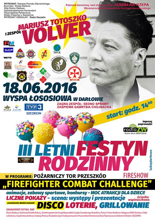 Dzienny Ośrodek Rehabilitacyjno - Terapeutyczny w Darłowie i Przyjaciele mają przyjemność zaprosić na III Letni Festyn Rodzinny, który odbędzie 18 czerwca 2016, na Wyspie Łososiowej w Darłowie. Start imprezy przewidziano na godzinę 14:00. W programie szereg atrakcji: