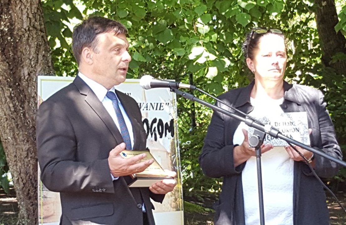 Przybyłych ekologów powitała Jadwiga Gosiewska –od roku 1987 prezes Ekologicznego Komitetu Obywatelskiego „Czuwanie”, lekarz pediatra i długoletni społecznik. Jadwiga Gosiewska przypomniała historię i działalność stowarzyszenia. EKO - Czuwanie powstało, jako wyraz protestu przeciwko budowie elektrowni atomowej w wykonaniu sowieckim nad jeziorem Kopań koło Darłowa, wkrótce po wybuchu elektrowni w Czarnobylu. Klub skutecznie protestował przeciwko budowie E.J. w Polsce poprzez demonstracje uliczne, wiece, spotkania naukowców ze społeczeństwem, gościł i dawał opiekę lekarską oraz udzielał pomocy dzieciom z Czarnobyla. Na uroczystość przybyli m.in.: prof. dr hab. Mariusz- Orion Jędrysek sekretarz stanu w Ministerstwie Środowiska i Główny Geolog Kraju oraz Pełnomocnik Rządu ds. polityki surowcowej, Starosta Powiatu Sławieńskiego Wojciech Wiśniowski, Burmistrz Darłowa Arkadiusz Klimowicz, Burmistrz Sławna Krzysztof Frankenstein. Spotkanie rozpoczęto krótką modlitwą za zmarłych ekologów, którą poprowadził ks. prałat Jan Giratowicz ze Słupska obchodzący 50-lecie kapłaństwa. Kapituła wyróżnienia po przeanalizowaniu zasług położonych dla ochrony środowiska i ekologii wyróżniła następujące osoby: ks. Zbigniew Krawczyk, mgr Ryszard Bruderek, Roman Strzałkowski, Eugeniusz Berliński, dr Krzysztof Frankenstein, Stowarzyszenie na rzecz Mieszkańców Gminy Darłowo, Lidia Bąk, Andrzej Grzybowski, Kazimierz Wojciech Wachowski, prof. dr hab. Mariusz – Orion Jędrysek, Jozef Maciej Roślicki, Wojciech Romaniszyn. Każdorazowo po odczytaniu przez wnioskującego zasług położonych dla ekologii wręczano osobie wyróżnionej marmurową tabliczkę z jego nazwiskiem, którą następnie mocowano na Skale Ekologa. Należy podkreślić, że dwóch spośród wyróżnionych: Berliński Eugeniusz i Strzałkowski Roman są członkami Towarzystwa Przyjaciół Ziemi Darłowskiej, którego również członkiem zbiorowym jest EKOCZUWANIE. Należy podkreślić zasługi dla ekologii, co prawda młodego, ale prężnego Stowarzyszenia na rzecz Mieszkańców Gminy Darłowo. Powstało ono w odpowiedzi na brak zrozumienia potrzeb mieszkańców przez ówczesne władze Gminy Darłowo. W ostatnich latach na obszarze gminy Darłowo postawiono 116 siłowni wiatrowych. Część z nich postawiono bezprawnie w miejscach, których oddziaływają one szkodliwie na mieszkańców i przyrodę. Potwierdził to proces sądowy, jaki w imieniu Stowarzyszenia na rzecz Mieszkańców Gminy Darłowo wytoczyła i wygrała jego prezes Grażyna Marcinkowska Hryckiewicz. Pani prezes, jak mówiła nie jest przeciwnikiem siłowni wiatrowych, lecz stawiania ich w pobliżu zabudowań, czy korytarzy przelotów ptaków chronionych przez Naturę 2000.