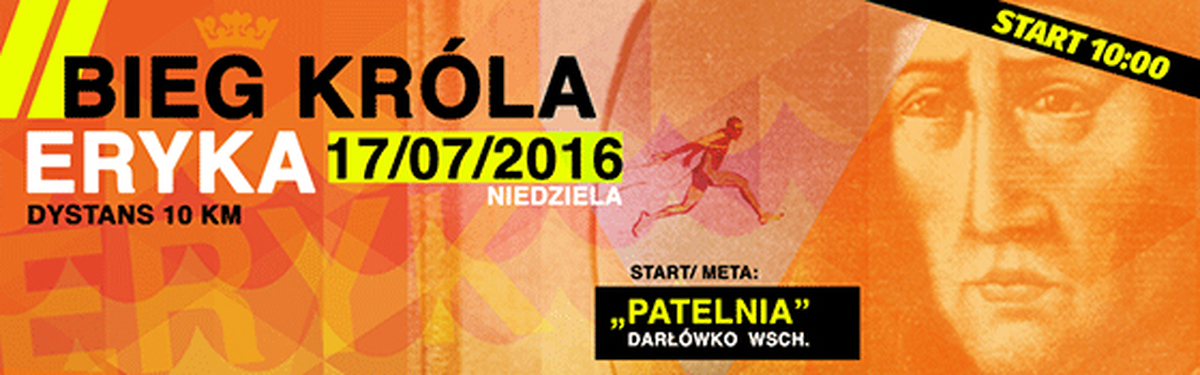 Miasto Darłowo zaprasza wszystkich biegaczy na start Biegu Króla Eryka - Darłowo 2016. Nadmorska impreza biegowa rozpocznie się 17 lipca br. (tj. niedziela), w Królewskim Mieście Darłowo. Start biegu - godz. 10:00 z terenu nazywanego Patelnią w Darłówku Wschodnim. Linia startu i mety zlokalizowana będzie na zbiegu ulic: Słowiańskiej z al. Jana Pawła II.