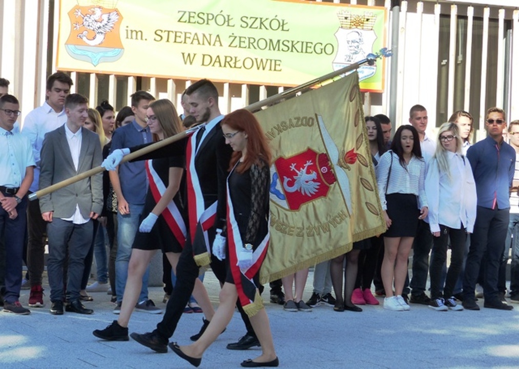 Pogodnego dnia 1 września 2016 młodzież Zespołu Szkół im. Stefana Żeromskiego w Darłowie rozpoczęła nowy rok szkolny 2016/2017. Towarzyszyli im w tej uroczystej chwili: dyrekcja, nauczyciele, kierownik referatu oświaty w Urzędzie Miejskim dr Zbigniew Mielczarski oraz delegacja nauczycieli akademickich z Politechniki Koszalińskiej.