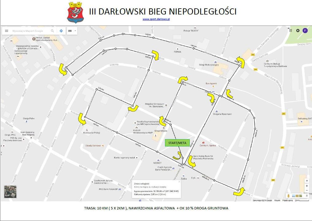 W dniu 12 listopada 2016 r. w sobotę o godz. 12.00 odbędzie się III Darłowski Bieg Niepodległości. Trasa liczyć będzie 10 km i w odróżnieniu do roku ubiegłego prowadzić będzie po uliczkach w centrum Miasta Darłowo. Zawodnicy pięć razy pokonywać będą 2 km rundę. Biuro zawodów w sali konferencyjnej Urzędu Miejskiego w Darłowie.