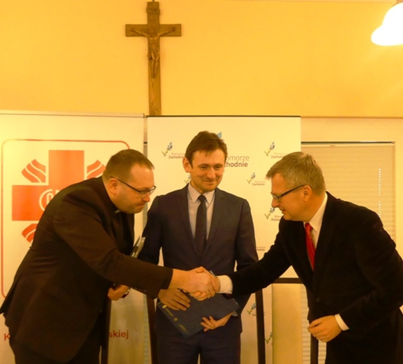 W siedzibie Domu Opiekuńczo-Hospicyjnego CARITAS w Darłowie im. bp. Czesława Domina w obecności burmistrza Darłowa – Arkadiusza Klimowicza i dyrektora hospicjum ks. Krzysztofa Sendeckiego, wicemarszałek woj. Zachodniopomorskiego Tomasz Sobieraj podpisał 24 lutego 2017 umowę z dyrektorem diecezjalnego Caritas ks Tomaszem Rodą w sprawie dofinansowania rozbudowy miejscowego hospicjum.