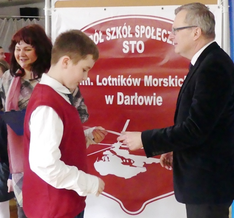 W Zespole Szkół Społecznych im. Lotników Morskich w Darłowie 1 marca 2017 Arkadiusz Klimowicz – burmistrz Darłowa w towarzystwie dyrektorki ZSS Joanny Tarkowskiej na uroczystym spotkaniu z uczniami i rodzicami wręczył 56 stypendiów, w tym 36 dla najlepszych uczniów SP i 20 dla gimnazjalistów.
