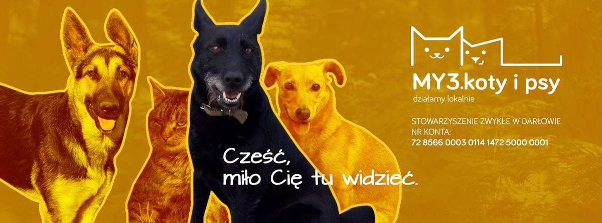 Stowarzyszenie zarejestrowano 30 czerwca 2016 r. Inicjatorkami i założycielkami tego niezmiernie potrzebnego stowarzyszenia są trzy dziewczyny: Kinga Wychowałek, Beata Bral-Spodyniuk oraz Katarzyna Zug. Działa jednak w niej kilkanaście osób na zasadach wolontariatu. Problem bezdomności zwierząt jest tematem wciąż żywym i aktualnym. Również w naszym mieście. Do niedawna darłowskie bezpańskie psy po interwencji Straży Miejskiej trafiały do schroniska w Kołobrzegu a za ich pobyt i utrzymanie płacili podatnicy. Od połowy ubiegłego roku sytuacja uległa zmianie z uwagi na fakt powstania Stowarzyszenia zwykłego zarejestrowanego w sławieńskim starostwie pod nazwą „MY 3 KOTY I PSY”. Mieszkanki miasta i gminy Darłowa: Kinga Wychowałek, Katarzyna Zug i Beata Bral-Spodyniuk od lat zajmowały się bezdomnymi zwierzętami w swoich środowiskach. Ostatecznie połączyły siły i walczą z brakiem odpowiedzialności ze strony ludzi, którzy skazują zwierzęta na „ulicę” a w konsekwencji na schronisko. Sterylizacja i kastracja kotów wolno bytujących to kolejny bardzo istotny aspekt ich działalności. Inne cele to działania na rzecz humanitarnego traktowania zwierząt, ich poszanowania i otoczenie opieką oraz pomoc w poszukiwaniu zaginionych zwierząt. Członkowie stowarzyszenia starają się docierać tam, gdzie ludzie nie zawsze potrafią poradzić sobie z własnymi problemami, mającymi jednocześnie wpływ na sytuację zwierząt domowych. Zdarza się że, zwierzęta trafiają do schroniska, bo ich właściciele nie mają środków na zakup karmy. Organizując zbiórki karmy dla bezdomnych psów i kotów przebywających w domach tymczasowych, wspomagają również te zwierzęta, które mają dom i są kochane lecz niedożywione z powodu ciężkiej sytuacji rodziny. Stowarzyszenie prowadzi też działania edukacyjne mające na celu poprawę świadomości naszego społeczeństwa np. spotkania z przedszkolakami. Utrzymują się z własnych składek i darowizn ( konto w Banku Spółdzielczym), nie prowadzą działalności gospodarczej a całość zebranych środków przeznaczają na usługi medyczne i zakup karmy leczniczej, która w zwykłych sklepach jest niedostępna. Dziewczyny organizują różne zbiórki za pośrednictwem portali internetowych np. materiałów budowlanych na psie budy i domki dla wolno bytujących kotów, akcesoria dla zwierząt, które trafiają wraz ze zwierzakami do domów tymczasowych, organizują bazarki internetowe. W chwili obecnej stowarzyszenie liczy już 12 członków. Wszelkie wiadomości na temat MY 3 KOTY I PSY można znaleźć na stronie facebookowej prowadzonej na bieżąco pod taką sama nazwą . Wielu mieszkańców zauważyło zapewne, że na słupach ogłoszeniowych i w lecznicach pojawiły się kolorowe wizerunki zwierzaków poszukujących swojego miejsca na ziemi. Wciąż brakuje jednak zaplecza w postaci domów tymczasowych, do których mogłyby trafiać zwierzęta wymagające pomocy. Psy i koty przebywają w takich domach do czasu adopcji lub wyzdrowienia w przypadku kotów wolno bytujących. Informacje w tej czy innej sprawie dotyczącej bezdomnych zwierząt można uzyskać uzyskać dzwoniąc pod numer tel. 608 601 036 (Beata) , 501 922 141 (Kasia) i 510 538 560 (Kinga). Założycielki stowarzyszenia, pracują lub studiują i wszystkie ich działania polegają na woluntarystycznej pracy. Przy okazji apelujemy do ludzi kochających zwierzęta i sponsorów o kontakt i wspieranie ich działalności. Chętnie przyjmują akcesoria dla zwierząt tj. szelki, żwirek, podkłady chłonące wilgoć (takie do dziecięcych łóżeczek) smycze, kontenerki, legowiska, które są nowe lub używane. Jeśli możesz kupić dla ich podopiecznych jakieś gadżety, śmiało pisz lub dzwoń - podpowiedzą Ci, czego aktualnie najbardziej od Ciebie potrzebują.