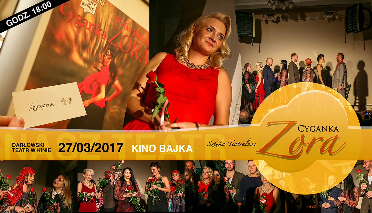 Po raz drugi w Darłowie. Tym razem na deskach darłowskiego Kina Bajka - sztuka teatralna: Cyganka Zora. Już 27 marca Darłowski Teatr w Kinie przedstawi sztukę w reżyserii Alicji Balcerzak w oparciu o tekst Stefana Janiczaka. W dramacie psychologicznym wystąpią: Magdalena Gilewska, Magda Jarzynka, Natalia Koźlińska, Agata Marynka, Karina Matusiak, Ada Stan, Wojciech Krakowiak, Arkadiusz Sip, Hubert Tepurski. Inspicjent: Konrad Kukla, suflerzy: Weronika Szlawska i Weronika Dzieciątka. Udźwiękowienie, aranżacje muzyczne: Tomasz Cieślik, Hubert Tepurski i Bartosz Matusiak. Za charakteryzację aktorów odpowiedzialna będzie Aleksandra Podolak. Reżyserem technicznym oraz osobą odpowiedzialną za realizację audiowizualną jest Tomasz Cieślik. Pomocy technicznej oraz wsparcia przy nagłośnieniu i oświetleniu dramatu udzielą: Marcin Cichocki i Robert Gorgol.