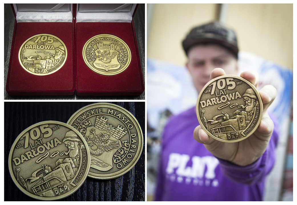 Medal odlano w odlewni Kulej z Kłobucka. Dodatkowe trzysta pięćdziesiąt sztuk medali tego samego, urodzinowego projektu wzbogaconych o szarfę, wykonano z przeznaczeniem na organizację trzeciej edycji Darłowskiej ZaDyszki. Każdy, kto wystartuje i ukończy bieg uliczny zaplanowany na dzień 20 maja br., otrzyma na pamiątkę złoty medal z muralem z Darłowa.