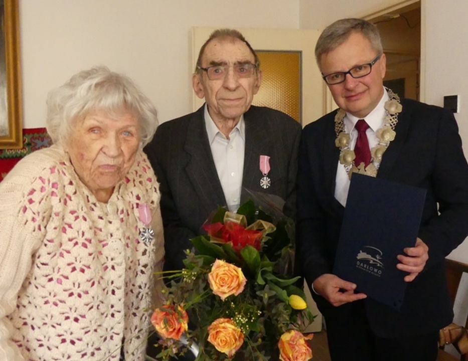 W domu państwa Janiny i Jerzego Łopuskich 4 kwietnia 2017 roku Arkadiusz Klimowicz –burmistrz Darłowa uhonorował jubilatów imieniu Prezydenta RP Medalami za Długoletnie Pożycie Małżeńskie.