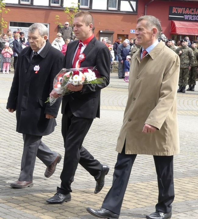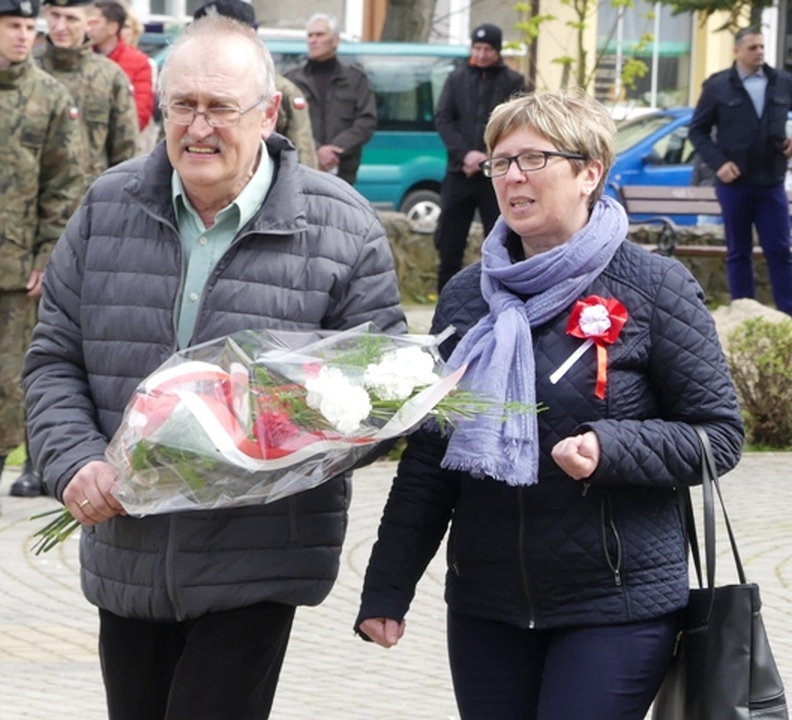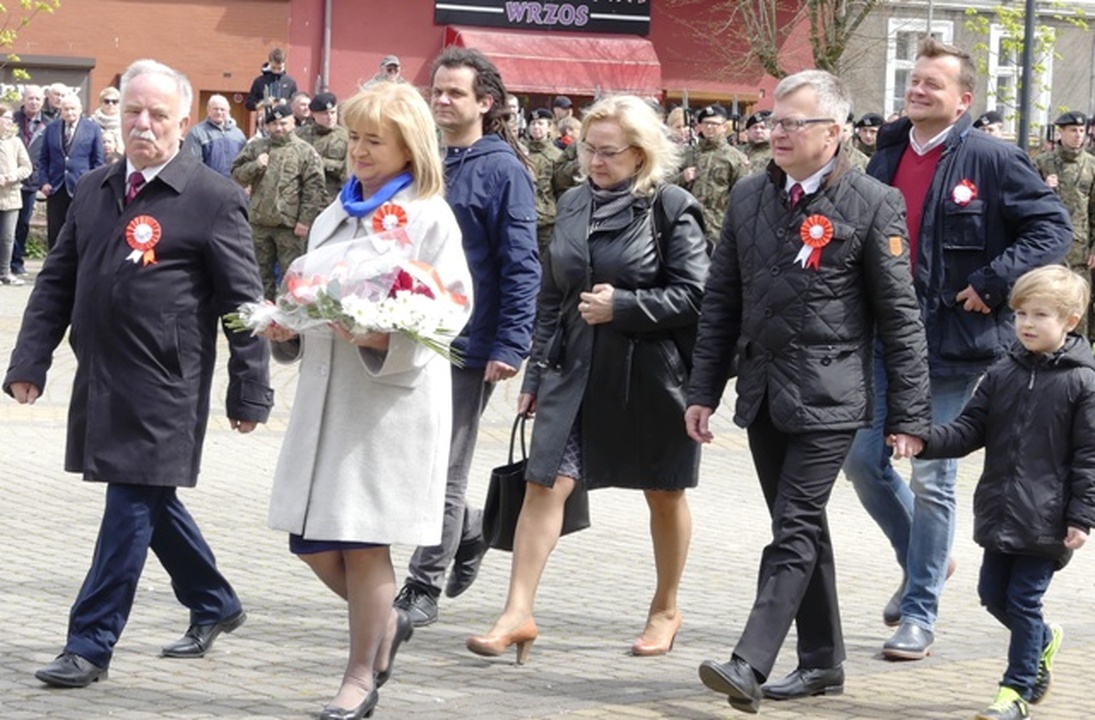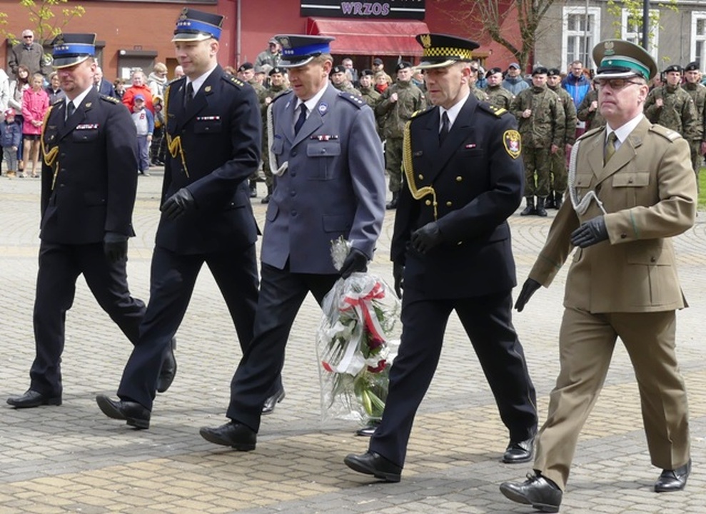 Mszę celebrował proboszcz Parafii M.B Częstochowskiej o Wiesław Przybysz. Udział w niej wzięli: Poczty Sztandarowe, Kompanie Honorowe Marynarki Wojennej i Szkoły Morskiej w Darłowie, władze miasta i gminy Darłowo, delegacja starostwa sławieńskiego, radni, harcerze, służby mundurowe i mieszkańcy Darłowa. Po mszy nastąpił przemarsz ulicami Darłowa na Plac Marszałka Józefa Piłsudskiego. Tam przy zapalonym zniczu i zaciągniętych wartach honorowych przez Straż Graniczną przy Pomniku Tysiąclecia Państwa Polskiego przebiegała dalsza część Manifestacji Patriotycznej z okazji 226. rocznicy uchwalenia Konstytucji 3 Maja, którą poprowadził Arkadiusz Sip dyrektor DOK-u witając wszystkich przybyłych. Po Hymnie Państwowym treść preambuł: Konstytucji 3 Maja i Konstytucji Rzeczpospolitej Polskiej z 1997 roku odczytali nam przedstawiciele darłowskiej młodzieży. Jak słyszeliśmy we wstępie dokumentu, Konstytucja 3 Maja powstała „dla dobra powszechnego, dla ugruntowania wolności, dla ocalenia ojczyzny naszej i jej granic”. Do zgromadzonych przemówił burmistrz Darłowa Arkadiusz Klimowicz. Przypomniał nam, że dokładnie 226 lat temu – 3 maja 1791 roku – Sejm Czteroletni jednogłośnie uchwalił ustawę rządową, zwaną Konstytucją 3 Maja. Ustawa zasadnicza była zapisana w 11 artykułach. Wprowadzała trójpodział władzy na ustawodawczą, wykonawczą i sądowniczą. Gwarantowała prawo powszechnej wolności dla szlachty i mieszczaństwa. Regulowała ona zasady funkcjonowania władz państwowych oraz prawa i obowiązki obywateli Rzeczpospolitej Obojga Narodów. Obecnie obowiązująca Konstytucja Rzeczypospolitej Polskiej, jako ustawa zasadnicza jest najważniejszym aktem prawnym RP uchwalonym 2 kwietnia 1997 roku przez Zgromadzenie Narodowe zatwierdzonym w ogólnonarodowym referendum 25 maja 1997 (20 lat temu).W preambule m.in. czytamy „W trosce o byt i przyszłość naszej Ojczyzny, odzyskawszy w 1989 roku możliwość suwerennego i demokratycznego stanowienia o Jej losie, my, Naród Polski - wszyscy obywatele Rzeczypospolitej, zarówno wierzący w Boga będącego źródłem prawdy, sprawiedliwości, dobra i piękna, jak i nie podzielający tej wiary, a te uniwersalne wartości wywodzący z innych źródeł, równi w prawach i w powinnościach wobec dobra wspólnego - Polski, wdzięczni naszym przodkom za ich pracę, za walkę o niepodległość okupioną ogromnymi ofiarami, za kulturę zakorzenioną w chrześcijańskim dziedzictwie Narodu i ogólnoludzkich wartościach, nawiązując do najlepszych tradycji Pierwszej i Drugiej Rzeczypospolitej, zobowiązani, by przekazać przyszłym pokoleniom wszystko, co cenne z ponad tysiącletniego dorobku, złączeni więzami wspólnoty z naszymi rodakami rozsianymi po świecie, świadomi potrzeby współpracy ze wszystkimi krajami dla dobra Rodziny Ludzkiej, pomni gorzkich doświadczeń z czasów, gdy podstawowe wolności i prawa człowieka były w naszej Ojczyźnie łamane, pragnąc na zawsze zagwarantować prawa obywatelskie, a działaniu instytucji publicznych zapewnić rzetelność i sprawność, w poczuciu odpowiedzialności przed Bogiem lub przed własnym sumieniem, ustanawiamy Konstytucję Rzeczypospolitej Polskiej”. Mówca przypomniał, że zarówno Prezydent, jak i obóz rządzący naruszyli Konstytucję, a teraz dążą do jej całkowitej zmiany. Po salwie honorowej delegacje samorządów: miasta, gminy i powiatu złożyły biało-czerwone wiązanki kwiatów na cokole pomnika z napisem „Nie zrucam ziemi skąd nasz ród”. Kwiaty złożyły także: służby mundurowe, przedstawiciele partii politycznych, placówek oświatowych, firm, spółdzielni, organizacji pozarządowych itd.
