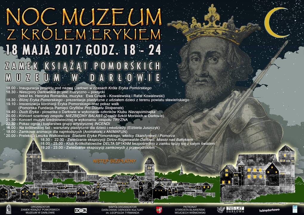Dzisiaj, nieprzypadkowo, bo w imieniny najsławniejszego Darłowianina - Eryka, wystartowały 705 Urodziny Miasta. W 620 rocznicę jego koronacji na króla Danii, Szwecji i Norwegii – Eryk I Pomorskiego, w ramach Nocy Muzeum, na Zamku Książąt Pomorskich w Darłowie, będziemy mogli zobaczyć inscenizację jego koronacji.