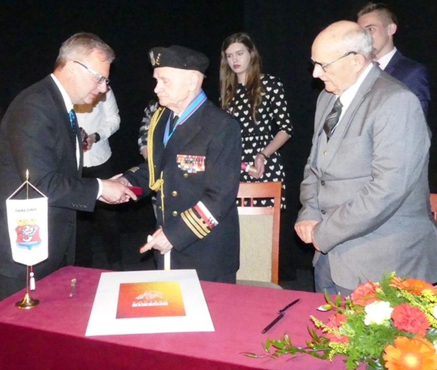 „My mieszkańcy Darłowa, przybyli na te ziemie po 1945 roku, reprezentujący starsze pokolenie Darłowiaków przekazujemy spuściznę materialną, kulturalną, obyczajową, historyczną, a także trud i dorobek wielu pokoleń mieszkańców Miasta Darłowa – Młodym Darłowiakom. Wierzymy, że nasi młodzi następcy godnie przejmą po nas pałeczkę. Natomiast my, młodzi obywatele tego miasta, świadomi odpowiedzialności i wartości przyjmujemy w posiadanie tak cenny dar jakim jest nasze Darłowo. Zaszczyceni, uroczyście ślubujemy dbać o nie najlepiej jak tylko potrafimy, z umiłowaniem, przywiązaniem i poszanowaniem. Niniejszą sztafetą pokoleń pragniemy zagwarantować ciągłość historii, tradycji i przywiązania do naszej małej Ojczyzny – jaką jest Darłowo i Ziemia Darłowska, w myśl podstawowej i najszczerszej zasady, która mówi, że ducha tego miasta tworzą jego mieszkańcy.” Deklarację podpisali z ramienia seniorów: Kazimierz Kuligowski, Jan Skórski, Danuta Puczyńska i z ramienia młodego pokolenia: Szymon Żebrowski, Dawid Jasiewicz, Andżelika Maria Garczyńska. Deklarację Darłowską, która jest symbolicznym dokumentem sztafety pokoleń podpisano w obecności: Burmistrza Darłowa Arkadiusza Klimowicza i licznie zgromadzonych mieszkańców. Z okazji 705 –lecia drugiej lokacji miasta Arkadiusz Klimowicz uhonorował medalami wydanymi specjalnie dla uczczenia jubileuszu Darłowa kilkanaście osób. Medale otrzymali: poseł Małgorzata Golińska (PiS), poseł i Honorowy Obywatel Darłowa Stanisław Gawłowski (PO), poseł Stefan Romecki (Kukiz'15), senator [Piotr Benedykt Zientarski (PO), starosta sławieński Wojciech Wiśniowski, pisarz i Honorowy Obywatel Darłowa – Marek Krajewski, partnerzy z Niemiec: Gabriela Wilkelmann z Gardelegen. W ramach Sztafety pokoleń medale otrzymali: Kazimierz Kuligowski – prezes ZKRP i BWP, Jan Skórski- mieszkaniec Darłowa od 1945 r. Danuta Puczyńska- przewodnicząca ZERiI oraz przedstawiciele darłowskiej młodzieży: Dawid Jasiewicz- wolontariusz i uczeń LO, Szymon Żebrowski- absolwent LO i student prawa, Andżelika Anna Garczyńska- licealistka członek Pocztu Sztandarowego LO. Uroczystość zakończył koncert grupy wokalno –muzycznej Acustical.