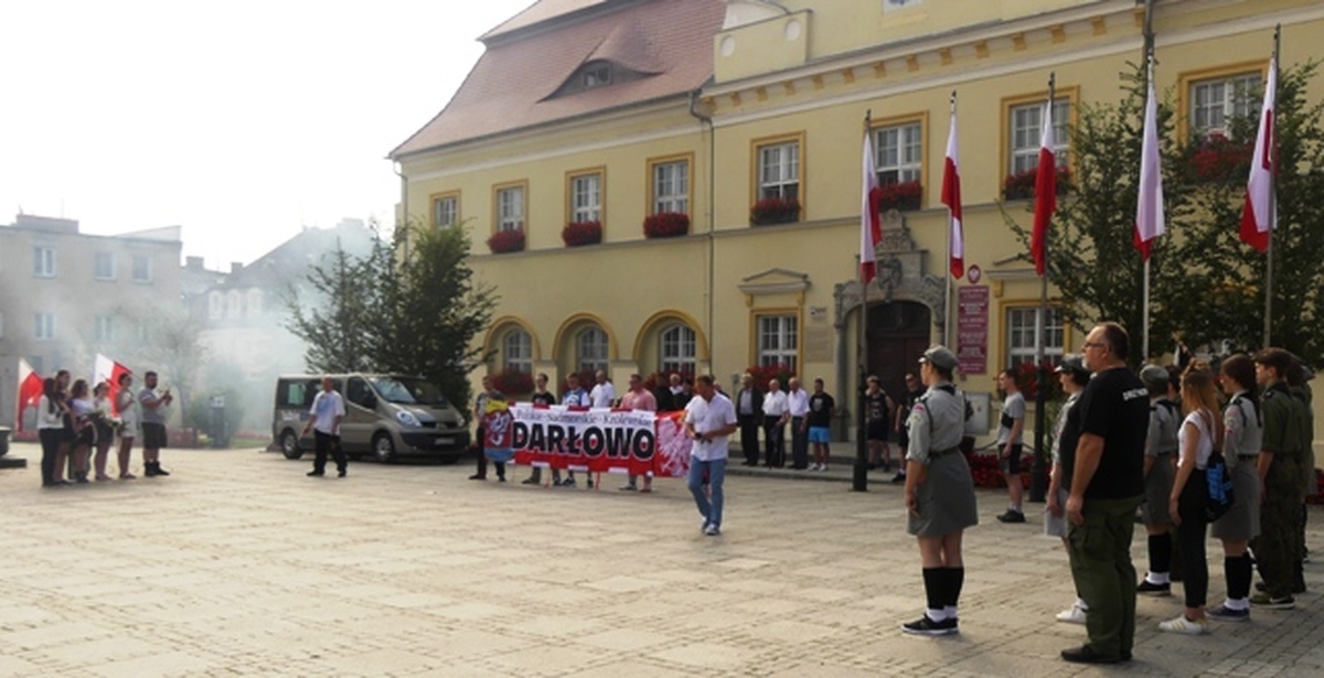 Do siedziby władz miasta przybyli kombatanci z porucznikiem Kazimierzem Kuligowskim pseudonim „Wiesiek” żołnierzem Powstania Warszawskiego na czele i zaproszeni goście. Duży udział w uroczystości mieli harcerze z 13 Darłowskiej Wielopoziomowej Drużyny Harcerskiej ZHP Szare Szeregi im. Rudego działającej przy Miejskim Gimnazjum im. Stanisława Dulewicza na czele z drużynowym podharcmistrzem Arturem Hamerlingiem. Recytowali oni wiersze Krzysztofa Kamila Baczyńskiegio i śpiewali pieśni powstańcze, a druh Artur Hamerling poprzez gawędę przypomniał wszystkim najważniejsze fakty z Powstania Warszawskiego. Z kwiatami i flagami przybyli uczniowie ZSS z Darłówka, a z dobrym słowem o. Damian Besarab. W godzinie W wszyscy wyszli przed darłowski ratusz, gdzie przy ryku syren puszczono flary, wywieszono okolicznościowy baner i okrzykami złożono hołd bohaterom Powstania Warszawskiego. Następnie burmistrz miasta Arkadiusz Klimowicz podkreślił znaczenie tego bohaterskiego zrywu oraz przeprowadził długi wywiad z Kazimierzem Kuligowskim pseudonim „Wiesiek”, który początkowo jako łącznik, a następnie z bronią w ręku walczył z okupantem o wolną i demokratyczną Polskę. Na zakończenie uroczystej wieczornicy gospodarz miasta Arkadiusz Klimowicz uhonorował darłowskich kombatantów okolicznościowymi medalami wybitymi przez Urząd Miejski z okazji 705 - lecia II lokacji Darłowa. Spotkanie zakończyło się odśpiewaniem Hymnu Państwowego.