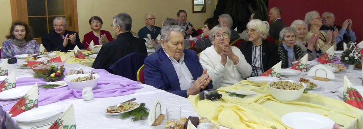 Oprócz licznie przybyłych członków i sympatyków tych związków i organizacji swoją obecnością zaszczycili opłatek: Arkadiusz Klimowicz-burmistrz Darłowa, Radosław Głażewski -wójt gminy Darłowo, franciszkanin -o Karol Wesołowski, Kazimierz Kuligowski - prezes ZKRP i BWP oraz szef PKPS, przewodniczący Polskiego Związku Niewidomych – Włodzimierz Balcerzak, który poprowadził całą uroczystość. Głos zabrali: burmistrz, wójt i franciszkanin. Życzyli oni wszystkim przybyłym i ich rodzinom zdrowia, szczęścia, dużo radości i pomyślności w Nowym Roku 2018. Stół wigilijny udekorowany gałązkami świerku i zapalonymi świecami uginał się od postnych potraw. Były tam śledzie marynowane dwojakiego rodzaju, pierogi z kapustą, kluski z makiem i rodzynkami, kapusta z grochem, czerwony barszczyk,chleb, ziemniaki a także pyszne ciasta, kawa i herbata. Śpiewano kolędy, przy akompaniamencie Jana Schwarzlose i jego akordeonu, łamano się opłatkiem i składano życzenia. Pani Maria Tyzo -Kwiecińska z PZN napisała i odczytała specjalnie napisany na tę okoliczność wiersz: