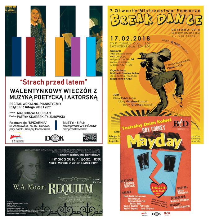 Natomiast w marcu polecamy: Teatralny Dzień Kobiet. Święto Osadników Ziemi Darłowskiej, konferencję naukową „Przekraczać Granice" i wyjątkowy koncert w Kościele Mariackim z udziałem Chóru z Poznania i muzyków Filharmonii Koszalińskiej: REQUIEM W.A. Mozarta. Kiedy? 11 marca 2018 (godz. 18:30). O szczegółach będziemy informować.