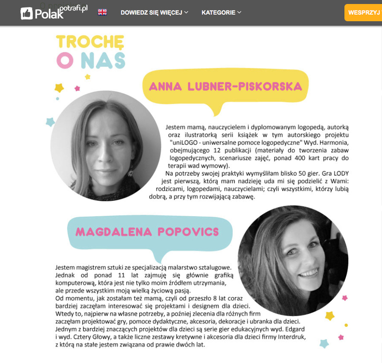 Taką logopedyczną grę pn. LODY wymyśliła i opracowała pochodząca z Darłowa Anna Lubner - Piskorska. Na jej liczniku znajdziemy ponadto materiały do tworzenia zabaw logopedycznych, książki, spotkamy autorskie ilustracje a poza wspomnianą grą LODY jeszcze ponad czterdzieści innych. Wszystkie powstały z pasji do wykonywanego zawodu.