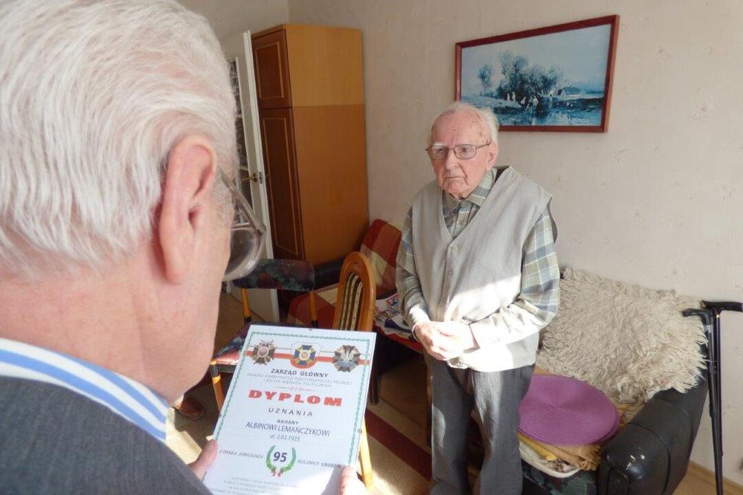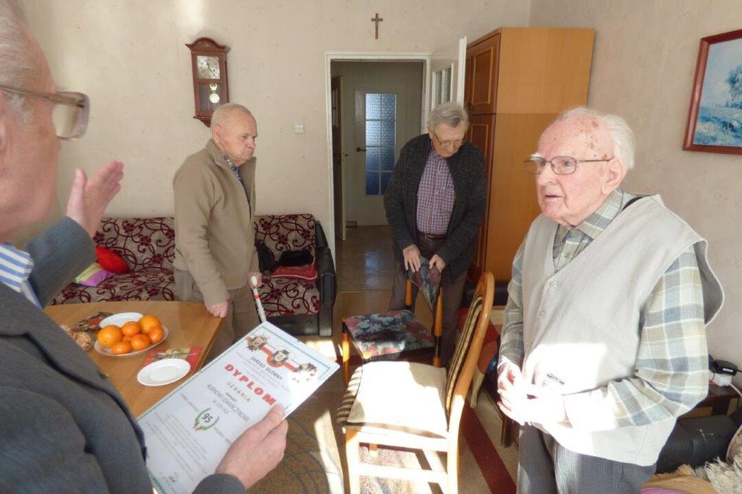 Z okazji jubileuszu 95 urodzin Jubilat otrzymał od Prezesa Zarządu Głównego Związku Kombatantów i Byłych Więźniów Politycznych gen Wacława Szklarskiego Dyplom Uznania „Za męstwo i ofiarność w walce o wyzwolenie naszej Ojczyzny Rzeczpospolitej Polskiej i za wieloletnią prace przy powojennej odbudowie kraju". Dyplom przekazał i gratulacje złożył Pan porucznik Kazimierz Kuligowski z towarzyszącym mu zarządem.