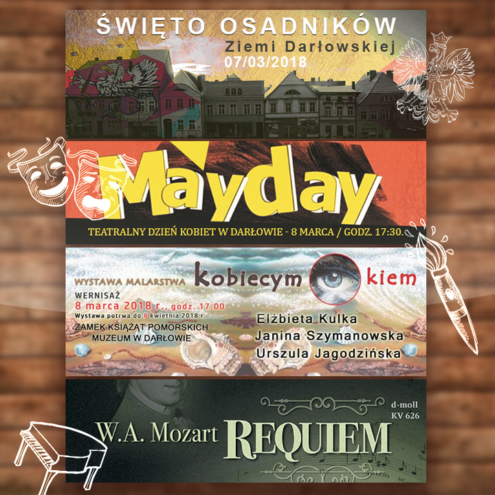 8 marca: Wystawa malarstwa pn.: „Kobiecym okiem". Darłowo - Zamek, godz. 17:00.