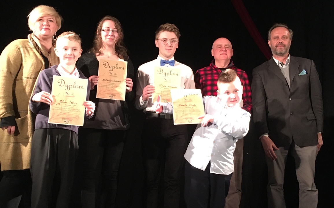 Jak nas poinformował Robert Gorgol w sobotę 3 marca Darłowski Ośrodek Kultury im. Leopolda Tyrmanda zorganizował Powiatowy "mały" i "duży" konkurs recytatorski w ramach Amatorskiego Ruchu Artystycznego. Zgłosiło się 16 młodych miłośników poezji i prozy. Jurorzy: Elżbieta Walczewska - Giemza (instruktor recytatorski z Pałacu Młodzieży w Koszalinie), Paweł Adamski (aktor Teatru Współczesnego w Szczecinie), Arkadiusz Sip (gospodarz miejsca - dyrektor Darłowskiego Ośrodka Kultury) oceniali uczestników w czterech kategoriach wiekowych: od najmłodszych klas szkoły podstawowej po młodzież ze szkół średnich. Oceniali m.in. dobór repertuaru, wartości artystyczne utworów, ich dopasowanie do możliwości wykonawczych uczestnika, interpretację utworów, kulturę słowa i ogólny wyraz artystyczny. Spośród młodszych uczestników wyróżniono Wiktorię Czernikowską z Łącka, Laurę Lisek ze Staniewic oraz Gabrielę Bukowską z Pieszcza, zaś laureatami zostali: Jakub Lebica ze Sławska, Kamil Duda z Noskowa i Aleksandra Skotarczak ze Staniewic. W "dużym" konkursie laureatem został Patryk Waszczuk z Kowalewic, który wystąpił jako jedyny w tej kategorii. Laureaci wezmą udział w wojewódzkich konkursach, które odbędą się na Zamku Książąt Pomorskich w Szczecinie: 07-08.04.2018 Mały Konkurs Recytatorski oraz 28-29.04.2018 r. Ogólnopolski Konkurs Recytatorski. Na zdjęciach laureaci i jurorzy.
