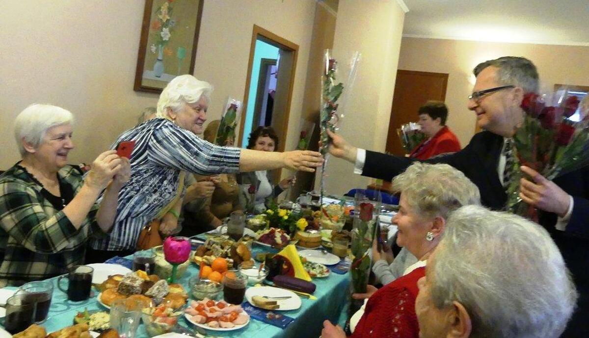 Uroczystość zaszczycili Wojciech Wiśniowski –starosta sławieński, Arkadiusz Klimowicz - burmistrz Darłowa i Zbigniew Mielczarski kierownik referatu oświaty i pomocy społecznej w Urzędzie Miejskim w Darłowie. Goście wręczyli szefowej związku Danucie Puczyńskiej kosze ze słodkościami i każdej pani piękną różę. Życzyli Paniom w tym szczególnym dniu wszystkiego, czego pragną ich serca oraz zdrowia, szczęścia i uśmiechu przez cały rok. Wszyscy obecni na sali mężczyźni odśpiewali sto lat ze wszystkimi jego wersjami. Na tę okoliczność seniorzy przygotowali kilka satyrycznych scenek, które rozbawiły wszystkich. W tym niekonwencjonalnym klimacie i nastroju przy suto zastawionych stołach śpiewano biesiadne piosenki przy akompaniamencie Jerzego Płatka i jego akordeonu. Z okazji Dnia Kobiet szereg „Złotych Myśli” na temat kobiet przytoczyła Genowefa Klingiert. Czym byłby świat bez kobiet – matek, babć, żon, córek? Każdy z nas wiele im zawdzięcza. Dlatego jeszcze raz z należnym szacunkiem i życzliwością składamy wszystkim Paniom życzenia spełnienia marzeń.