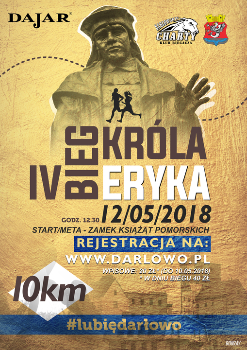 Wyjątkowy bieg, wyjątkowe miejsce, wyjątkowa trasa... Jutro o godz. 12:30 startuje IV Bieg Króla Eryka na dystansie 10 km. Zapraszamy do Darłowa, gdzie historia splata się harmonijnie z nowoczesnością. Start i Meta w siedzibie Króla Danii, Szwecji i Norwegii - Eryka I Pomorskiego, czyli na Zamku Książąt Pomorskich - Muzeum w Darłowie. Trasa biegu wiedzie nie tylko przez centrum zabytkowe Darłowa ale także przez jego dzielnicę plażową - Darłówko.