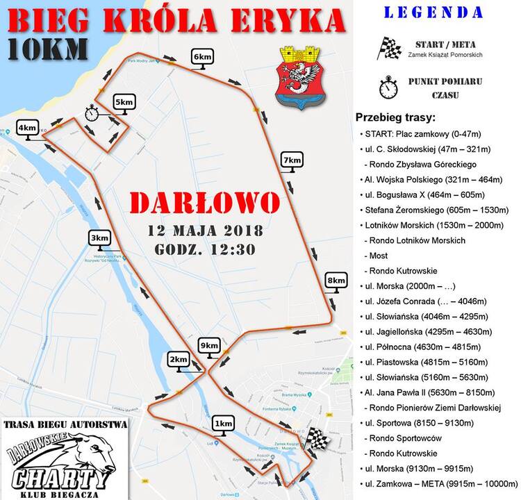 Trasa wyznaczona, opracowana i wymierzona przez Klub Biegacza Darłowskie Charty.