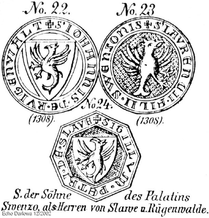 Lokowane przed rokiem 1270 miasto Darłowo na prawie pomorskim, zostało zniszczone w roku 1306 podczas napadu wojsk brandenburskich wspomaganych przez biskupa kamieńskiego na ziemie darłowską i sławieńską. Ostała się w Darłowie jedynie warowna siedziba Wawrzyńca Święcy określana jako zamek-twierdza. Władcy Państwa Święców synowie wojewody: Piotr, Jaśko i Wawrzyniec spotkali się 1 stycznia 1312 w tej twierdzy i postanowili w pobliżu zniszczonego pierwszego miasta lokować i zbudować nowe miasto Darłowo na prawie lubeckim. Musieli jednak poszukać zasadźców, ponieważ w słowiańskim Darłowie ich nie było. Znaleźli ich w pobliskim Koszalinie, który miał już prawa lubeckie od roku 1266. Akt drugiej lokacji Darłowa (Ruyenwolde - Rugijski Wał) na prawie lubeckim bracia Święcowie (dobrze mówiący po polsku) opieczętowali w siedzibie Jaśka Święcy w Sławsku 21 maja 1312.