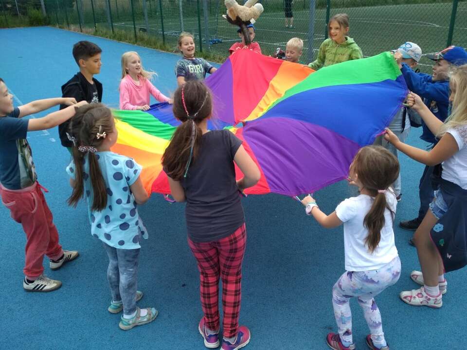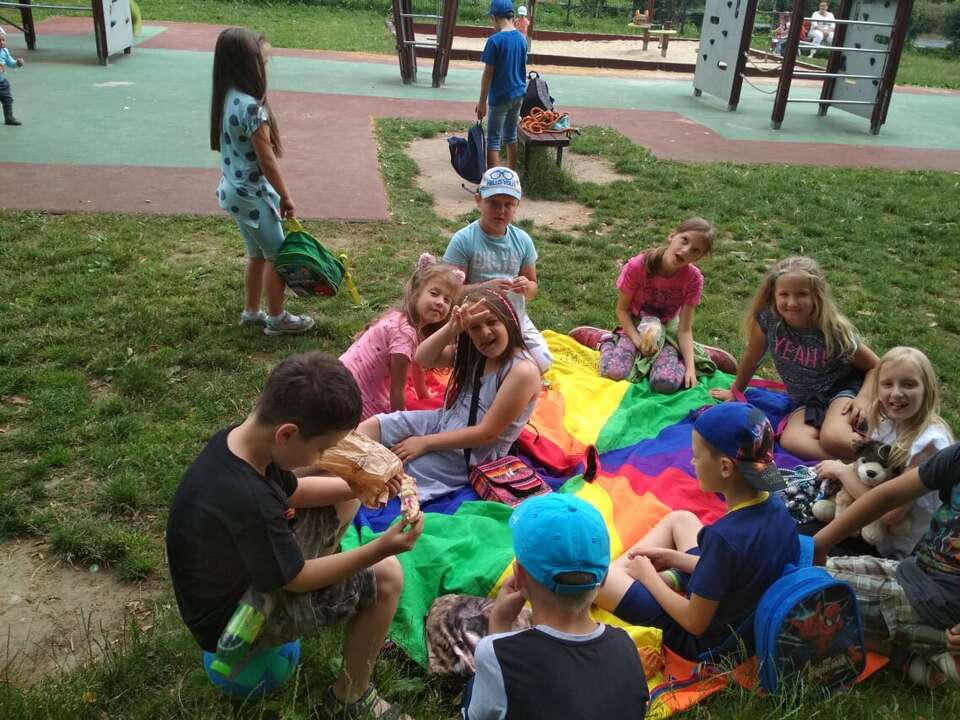 Pierwszy tydzień spędzono bardzo aktywnie. Codziennie były spacery, gry i zabawy integracyjne oraz dużo, dużo sportu na świeżym powietrzu! Wykonywano również zakładki do książek i odwiedzano place zabaw - gdzie odkrywano swoje możliwości. W trakcie zajęć dzieci otrzymują posiłek.