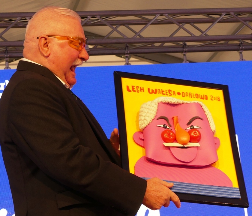 Tytuł ten został nadany założycielowi i pierwszemu przewodniczącemu Niezależnego Samorządnego Związku Zawodowego „Solidarność” przez Radę Miejską już w roku 2010- w trzydziestą rocznicę sierpnia 80. Przywódca Solidarności, jeden z symboli obalenia komunizmu w Europie środkowo-wschodniej, laureat nagrody Nobla 29 września bieżącego roku skończy 75 lat życia. Były prezydent RP, obok papieża Jana Pawła II, jest najbardziej znanym Polakiem we współczesnym świecie. W imieniu Arkadiusza Klimowicza burmistrza Darłowa, który przebywa poza granicami naszego kraju klucze do Królewskiego Miasta Darłowa i Honorowy Dyplom wręczyli: starosta sławieński Wojciech Wiśniowski, wiceburmistrz Elżbieta Karlińska i wiceprzewodniczący Rady Miejskiej Czesław Woźniak. Z okazji tej miłej uroczystości odczytano list gratulacyjny i okolicznościową laudację od Arkadiusza Klimowicza burmistrza Darłowa o następującej treści