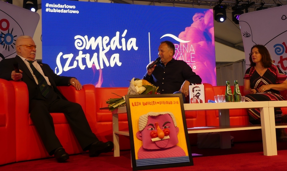 Przy okazji Lechowi Wałęsie wręczono również jego plastyczną karykaturę. Następnie gość „Festiwalu Media i Sztuka” z humorem odpowiadał na pytania dotyczące swojego życia i działalności oraz opublikowanego wywiadu rzeki przeprowadzonego przez znanych dziennikarzy Cezarego Łazarewicza i Andrzeja Bobera pt. „Ja Rozmowa z Lechem Wałęsą”.