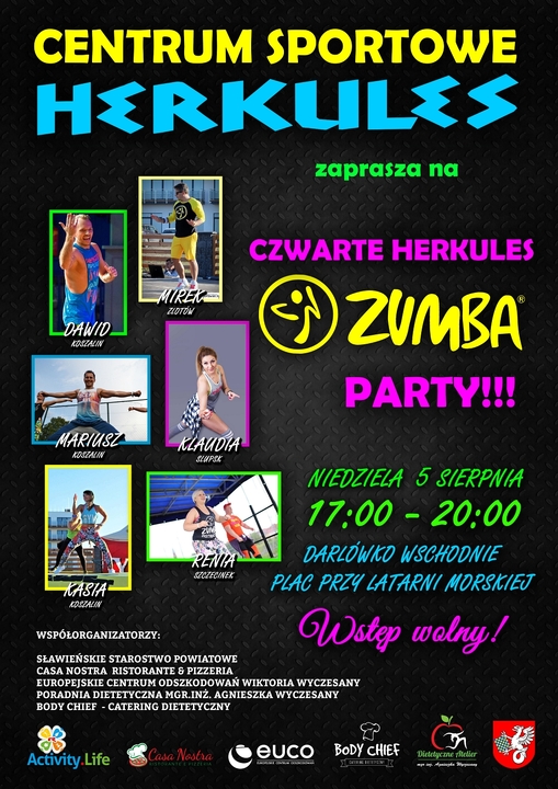 Centrum Sportowe Herkules zaprasza do udziału w trzygodzinnym maratonie Zumba Fitness, który odbędzie się w niedzielę 5 sierpnia przy Latarni Morskiej w Darłówku Wschodnim. Start imprezy godz. 17:00. Polecamy uwadze i zapraszamy.