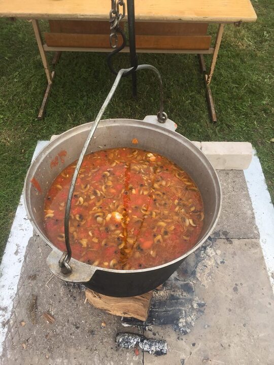 Podczas mistrzostw o tytuł najwspanialszej zupy rybnej licznie zgromadzona publiczność obserwowała gotowanie 40 litrów zupy rybnej w kociołku od samego początku do końca, a następnie degustowała.