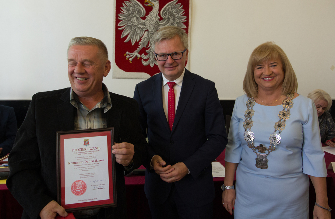 Również radny Paweł Breszka w imieniu Radnych Rady Miejskiej podziękował burmistrzowi miasta i jego zastępcy Elżbiecie Karlińskiej oraz pracownikom biura Rady Miejskiej za owocną współpracę na rzecz Miasta Darłowa w minionej kadencji.