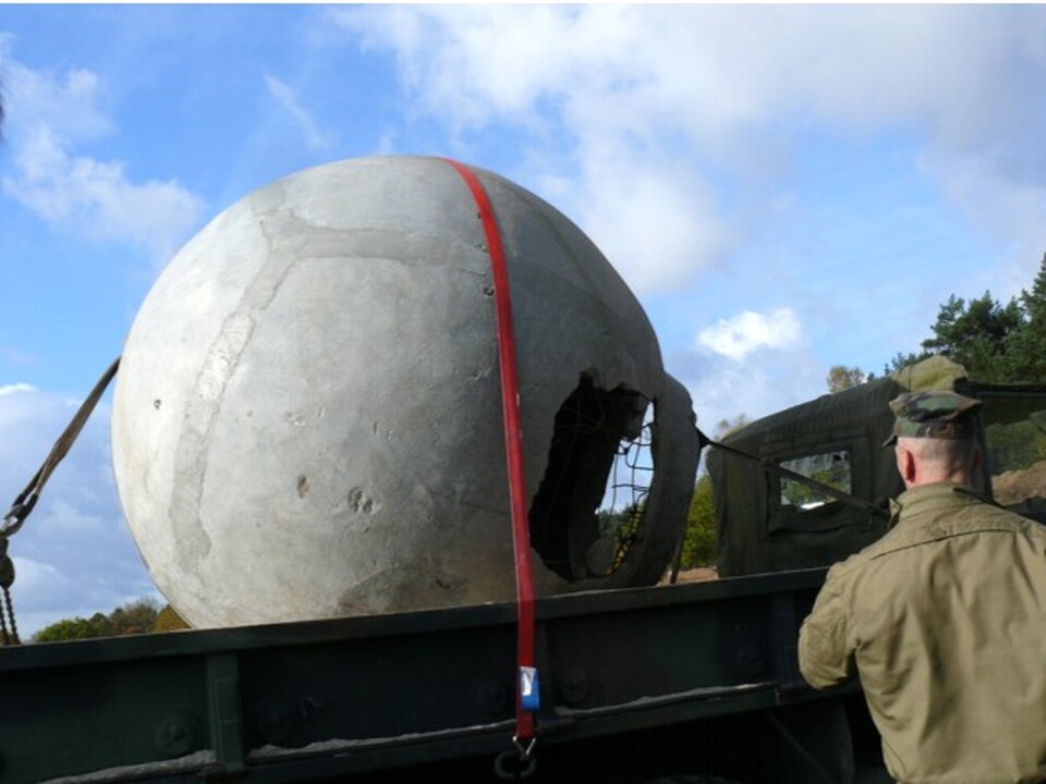 Bystre oczy Mariana Laskowskiego wytropiły na bobolińskiej plaży w pobliżu ujścia rzeki Martwej do Bałtyku wystającą z piachu żelbetową kulę. Od razu wiedział, że jest to unikalne znalezisko z czasów II wojny światowej. Okazało się, że jest to jednoosobowe stanowisko obserwacyjno – strzeleckie, które kilka lat temu stoczyło się z wydmowej skarpy i stopniowo wsiąkało w grząskie plażowe piaski. Postanowił je odkopać i przewieźć do swojego militarnego skansenu. Starania o zezwolenie u konserwatora zabytków i dyrektora Urzędu Morskiego w Słupsku zajęły mu niemal dwa lata. Rankiem 18 października 2008 roku mając wszystkie pozwolenia przystąpił do wydobycia tej betonowej kuli pustej w środku. Niemcy nazywali je kugelstand lub kugelbunker. Konstruktorem tego jednoosobowego schronu był dyplomowany architekt Sylwester Laibe. We wrześniu 1944 roku minister uzbrojenia Albert Speer wydał postanowienie o wybudowaniu 50 tysięcy tego rodzaju schronów, z których niewidoczny obserwator w razie potrzeby mógł również strzelać z karabinu maszynowego. Ich produkcją zajęła się firma Dyckerhoff & Widmann, ta sama, która budowała żelbetowe statki w Darłowie. Wykonano ich około 2000 sztuk. Żelbetowa kula z pierścieniowym kołnierzem podobna jest do kulistego klosza do lampy. Kula ma średnicę wewnętrzną 230 cm i ściankę grubości 4 cm. Otwór, przez który dostawano się do wnętrza schronu ma średnicę 80 cm. Cały schron był zakopany w gruncie otworem do góry miał wysokość 2,58 metra. We wnętrzu kuli tuż poniżej jej największej średnicy znajdował się pomost z przykrytym otworem prowadzącym do najniższej części kuli, pełniącej zapewne rolę miejsca odpoczynku lub magazynku. Bezpośrednio z przyczepy samochodowej po równi pochyłej staczano betonową kulę do uprzednio wykonanego wykopu. Następnie po ustawieniu obsypywano ją ze wszystkich stron ziemią lub piaskiem za wyjątkiem cylindrycznego wejścia. Schowany całkowicie obserwator za pomocą lornety nożycowej lub peryskopu obserwował cały horyzont i drogą radiową lub telefonicznie przekazywał meldunki. W czasie wojny darłowski schron poddano próbie odporności. W odległości 7 metrów od schronu zrzucono 1000 funtową bombę, która lekko uszkodziła to jedno osobowe stanowisko obserwacyjno – strzeleckie. Takim kulistym schronem w Europie cieszą się jedynie Militarne Muzeum w Wiedniu oraz jedno muzeów w Czechach. Darłowskie znalezisko jest jedyne w Polsce. Dobrze się stało, że wzbogaciło ono kolekcję militarną Mariana Laskowskiego. Wkrótce będzie ozdobą muzeum techniki militarnej we Malechowie.Leszek Walkiewicz