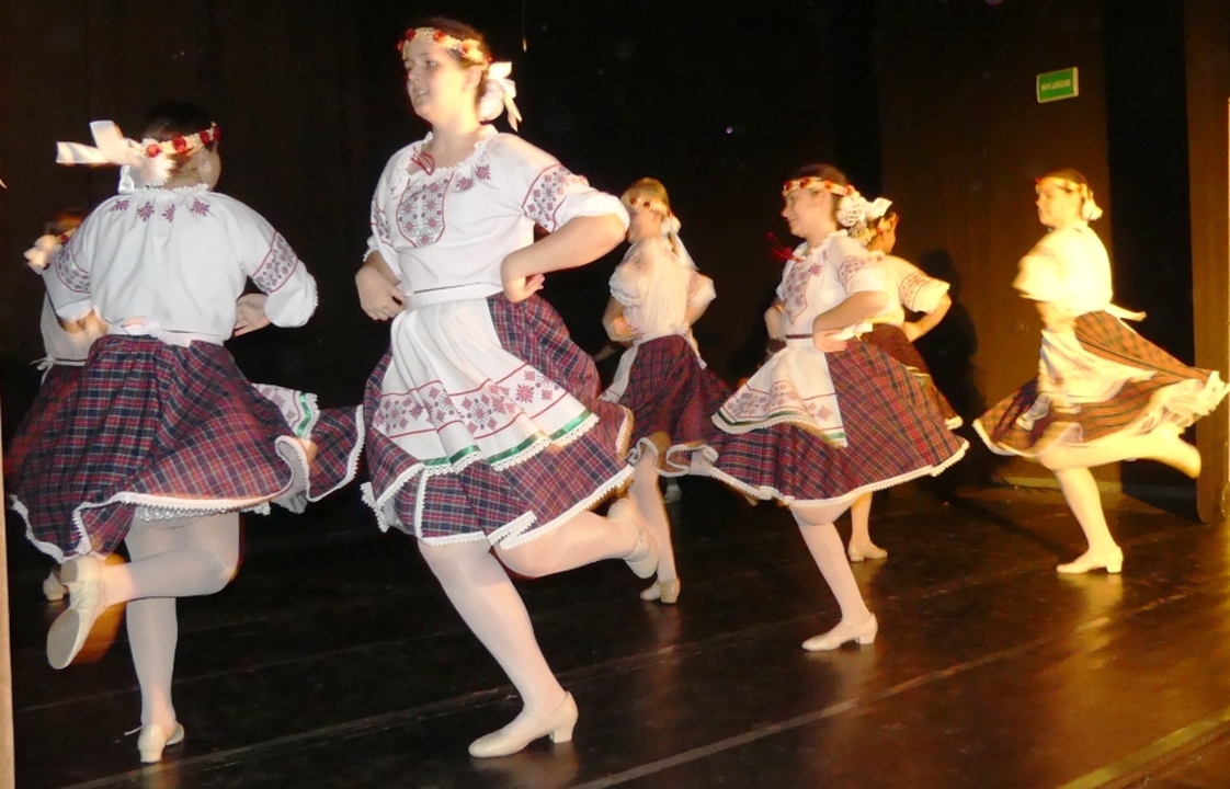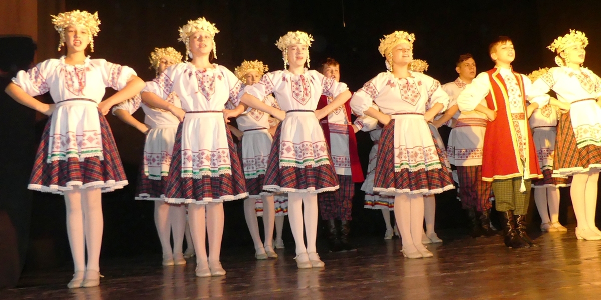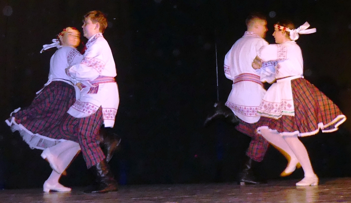 Młodzi goście w pięknych ludowych strojach zaprezentowali nam kilkanaście głównie ludowych pieśni i tańców białoruskich. Młodzi artyści pokazali także kilka tańców nowoczesnych w oryginalnych układach choreograficznych. Nie zbrakło również naszego narodowego tańca Krakowiaka i piosenki „Szła dzieweczka do laseczka” gorąco oklaskiwanych przez młodych widzów.