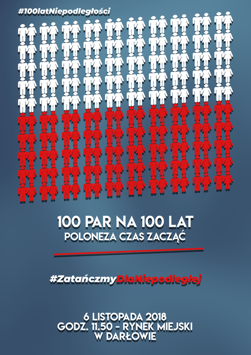 Polski taniec reprezentacyjny zatańczymy na placu przed Ratuszem z okazji 100. Rocznicy Odzyskania przez Polskę Niepodległości. Tym samym, wydarzeniem tym zainaugurujemy oficjalne obchody Narodowego Święta Niepodległościw Darłowie.