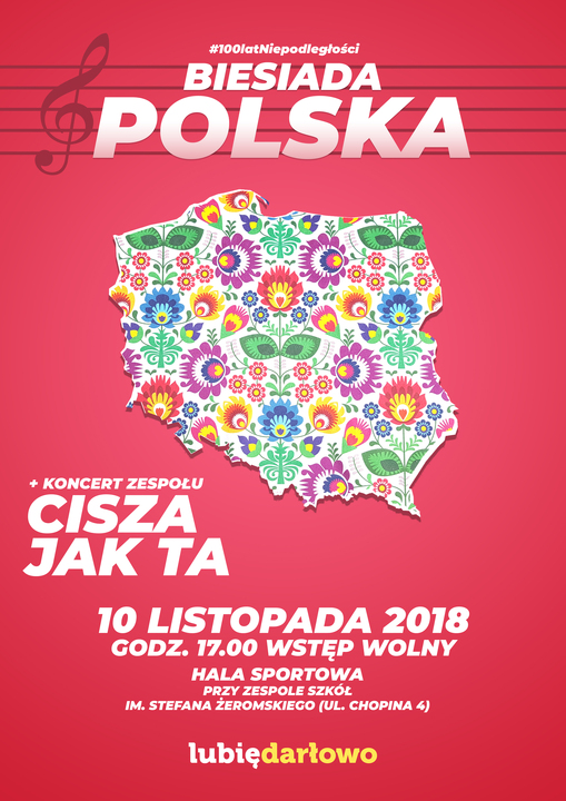 Zapraszamy serdecznie wszystkich mieszkańców Darłowa w najbliższą sobotę, tj. 10 listopada 2018 do hali gimnastycznej przy Zespole Szkół im. Stefana Żeromskiego (Darłowo, ul. Chopina 4) na kolejną edycję Biesiady Polskiej.