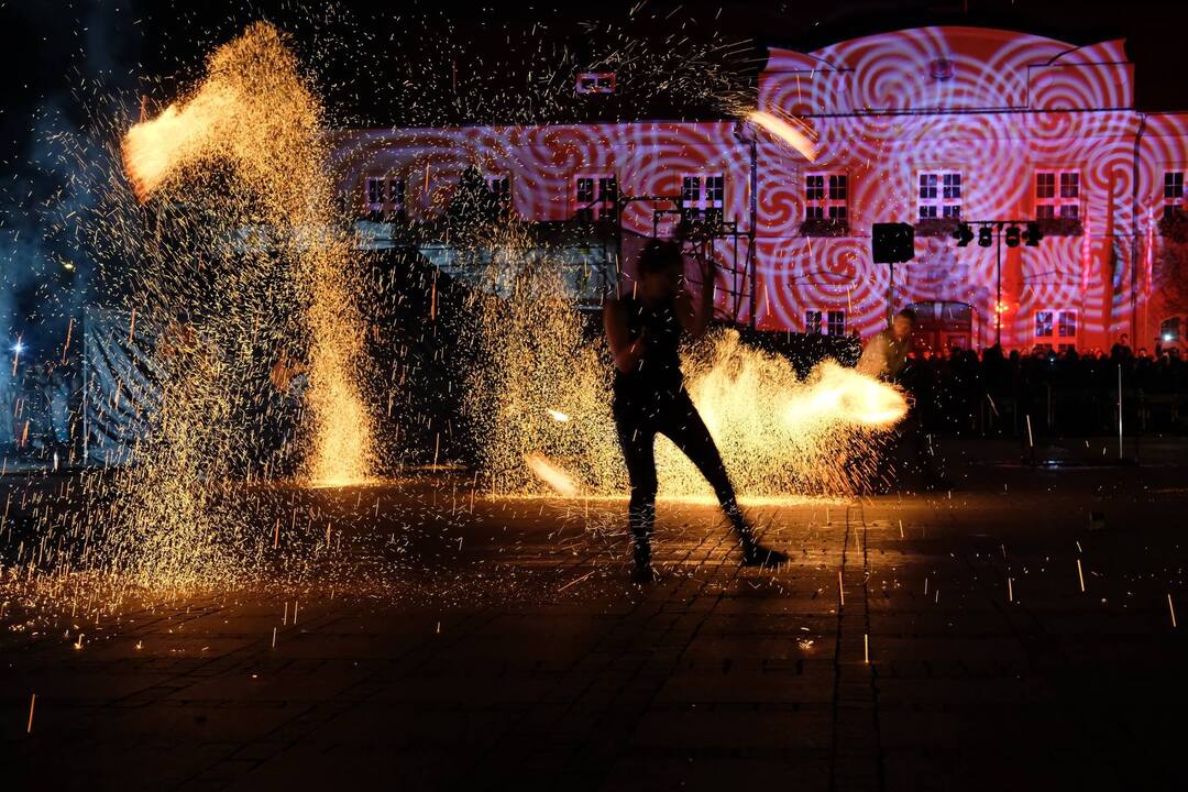 To było gorące show ! W środę 31 października darłowski Plac Tadeusza Kościuszki wypełnił się po brzegi licznie zgromadzoną publiką. To wszystko za sprawą pokazu żywego ognia w ramach wydarzenia Darłowo FIRE SHOW 2018. Kuglarska sztuka w wykonaniu koszalińskich artystów z grup Incendi oraz Jumpfire zgromadziła ponad tysiąc mieszkańców. W dwudziestotrzyminutowym pokazie zatytułowanem "Leśne licho" mogliśmy zobaczyć niezwykłą "płonącą" choreografię. - To już trzecia edycja. Frekwencja na widowni pokazała, że darłowiacy lubią takie pokazy. Po uśmiechach na twarzach i gromkich oklaskach upewniłem się tylko, że warto to kontynuować. Może nawet powinniśmy robić to częściej. - mówi Daniel Bonzay Frącz z ramienia Rap Piwnicy (pomysłodawca i współorganizator imprezy). Dziękuję Miastu Darłowo za możliwość organizacji tego show. Ze swojej strony dodam, że postanowiliśmy tą sztuką podsumować miesięczną zbiórkę na rzecz naszej chorej mieszkani Kingi Bartkowiak. To był taki nasz wspólny finał akcji. Dodajmy, że udało się uzbierać do tej pory ponad 78 000 zł. To prawie 30 tysięcy więcej niż to zastało założone. Dziękujemy.
