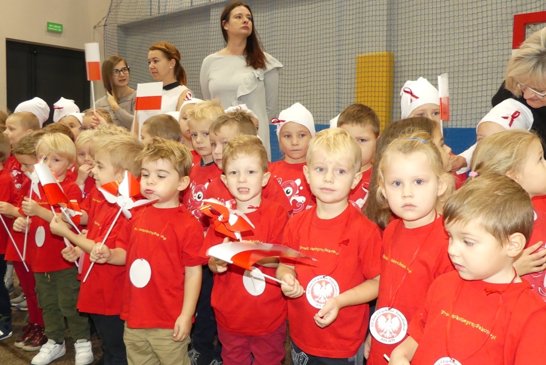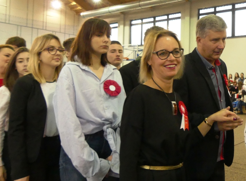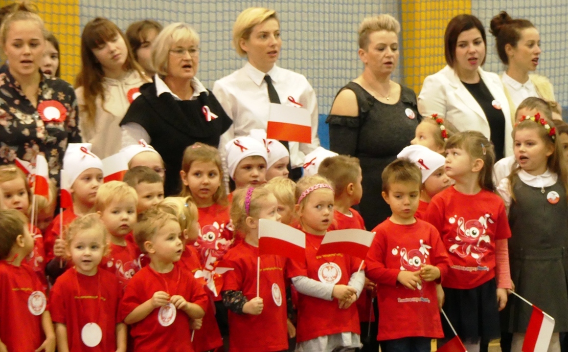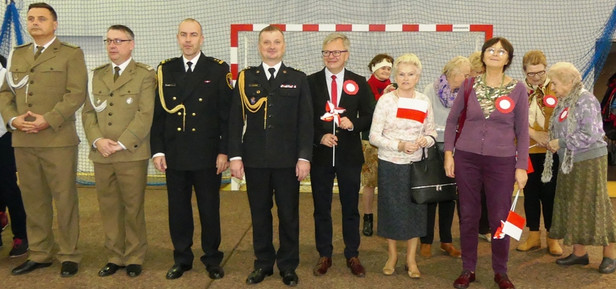 Po odśpiewaniu hymnu dyrektorka Zespołu Szkół Joanna Witkowska wręczyła dyplomy dla najlepszych klas biorących udział w konkursie wiedzy o Odzyskaniu Niepodległości przez Polskę. Na zakończenie uroczystości młodzież i dzieci zatańczyły Poloneza.