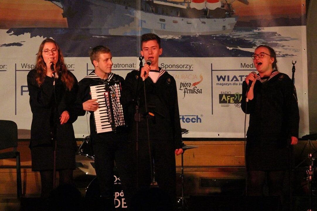 W minioną sobotę nauczyciele i uczniowie wyruszyli do Poznania, aby wziąć udział w XIII Szanta Claus Festiwal. Zespół wystąpił w odnowionym składzie tj.Dominika Lesner - wokal, Bogdan Balcerzak - wokal, gitara elektroakustyczna, Weronika Zybura-wokal, Julia Dziemianczyk-wokal, Tomasz Stangryciuk - wokal, konga, Maksymilian Kucharski - wokal, Krzysztof Kołakowski- gitara akustyczna, Piotr Sobieraj - akordeon. W festiwalu wystąpił także duet Bogdan Balcerzak i absolwent szkoły Hubert Tepurski. W Poznaniu swoje umiejętności zaprezentowało 7 zespołów, ale mimo dużej konkurencji miło nam poinformować, ze nasz szkolny zespół zajął 1 miejsce. Wyróżnienie otrzymał także Pan Bogdan Balcerzak. Tym samym kolejny raz "Balast" weźmie udział krakowskim "Shanties". Gratulujemy i życzymy dalszych sukcesów.