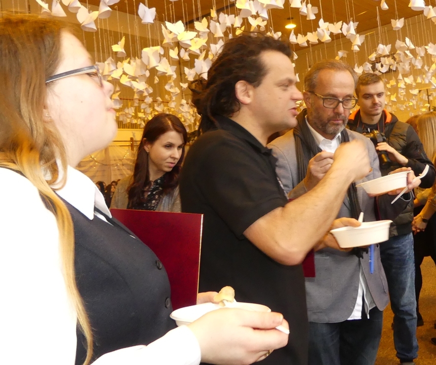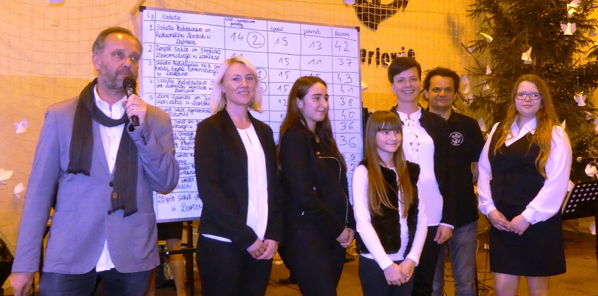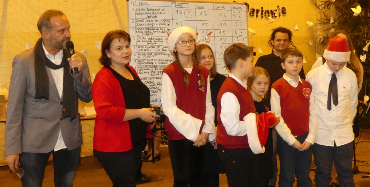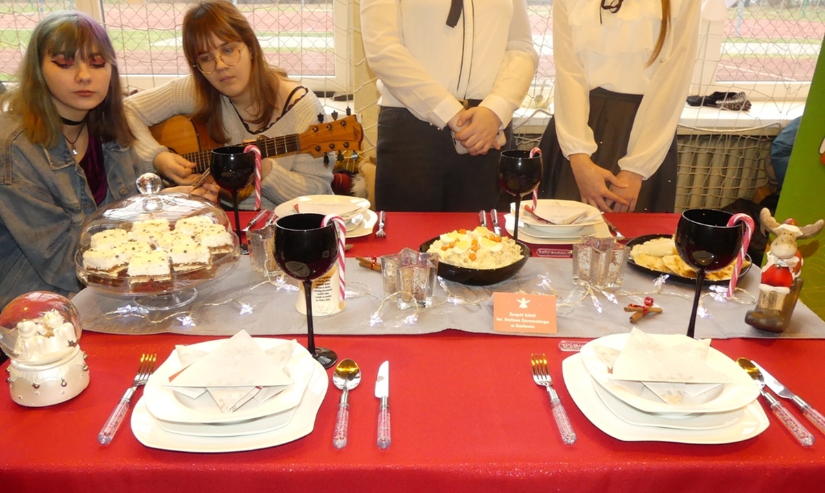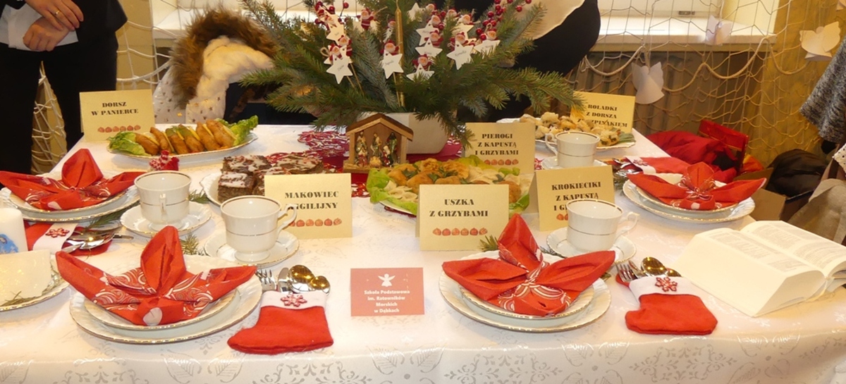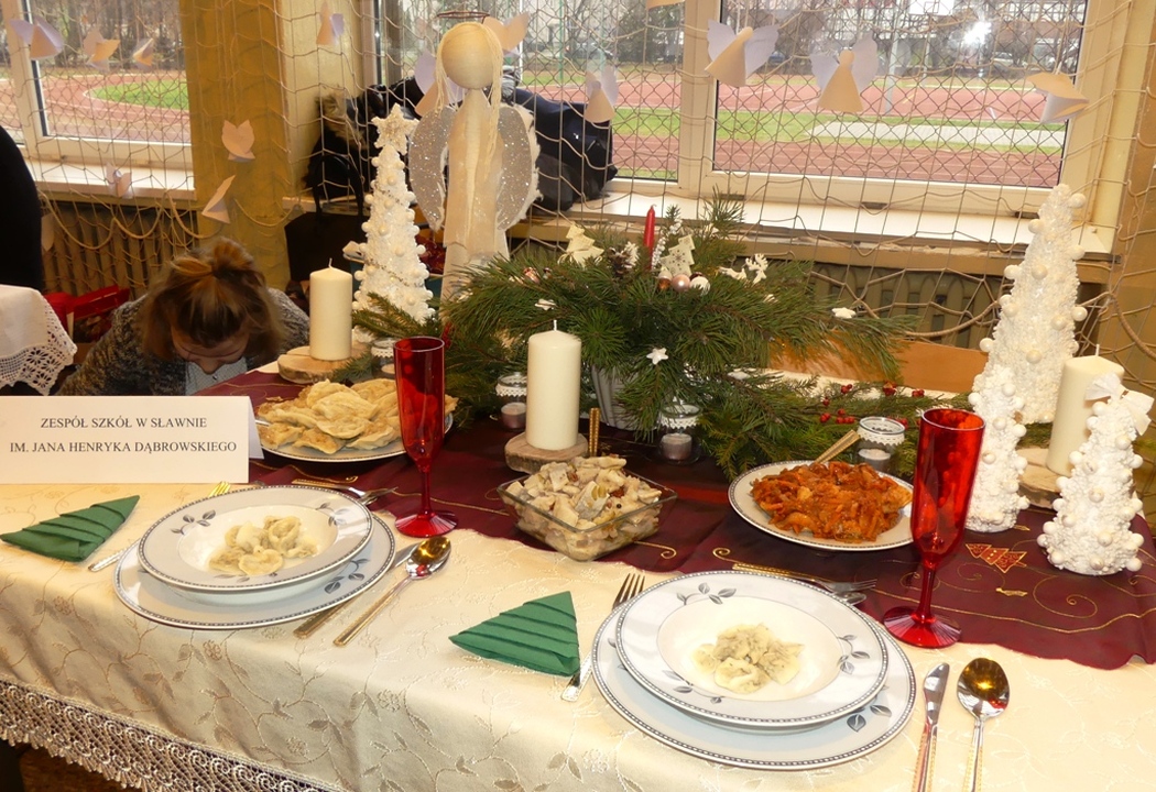 Społeczność Zespołu Szkół Morskich w Darłowie na tę wspaniałą imprezę przygotowała parę tysięcy kartonowych białych Aniołków, którymi udekorowano salę gimnastyczną stwarzając niebiański nastrój. Tegoroczne jury w składzie Arkadiusz Sip dyrektor DOK-u, Robert Gorgol nauczyciel żywienia w ZSM i najlepsza uczennica w tej specjalności oceniali startujące zespoły w trzech konkurencjach: wygląd świątecznego stołu i smak wigilijnych potraw, śpiewanie kolęd i pastorałek oraz smak perników i ciast. W tym roku pierwsze miejsce w łącznej punktacji zajęła Szkoła Podstawowa Nr 3 im. Króla Eryka Pomorskiego w Darłowie zdobywając 43 punkty. Drugie miejsce wywalczyła Szkoła Podstawowa im. Ratowników Morskich w Dąbkach-42 p. Na trzeciej pozycji uplasowała się Szkoła Podstawowa STO im. Lotników Morskich w Darłówku zdobywając 41 p. Zaledwie jednego punktu zabrakło Zespołowi Szkół Agrotechnicznych w Sławnie do zdobycia medalowej pozycji Zwycięska szkoła otrzyma 20 biletów do darłowskiego kina Bajka w Darłowie na dowolny film. Wszędzie królowały tradycyjne pyszne potrawy wigilijne jak uszka, pierogi, sałatki ryby pod wieloma postaciami, czerwony barszczyk i pyszne ciasta. Wszystkim placówkom oświatowym biorącym udział pokazie należą się wyrazy uznania i gratulacje. Degustacjom potraw towarzyszyły występy solistów i zespołów śpiewaczych z poszczególnych szkół występów. Organizatorzy konkursu spisali się na szóstkę z plusem.