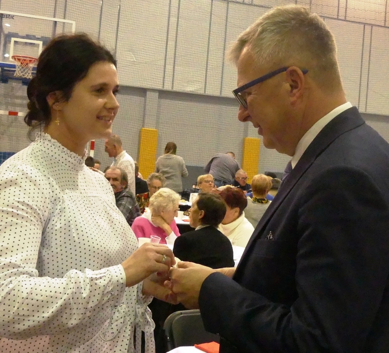Ojciec Wiesław Przybysz razem uczestnikami wieczoru przed wigilijnego odmówił modlitwę i poświęcił opłatek, którym wszyscy się łamali i składali życzenia.